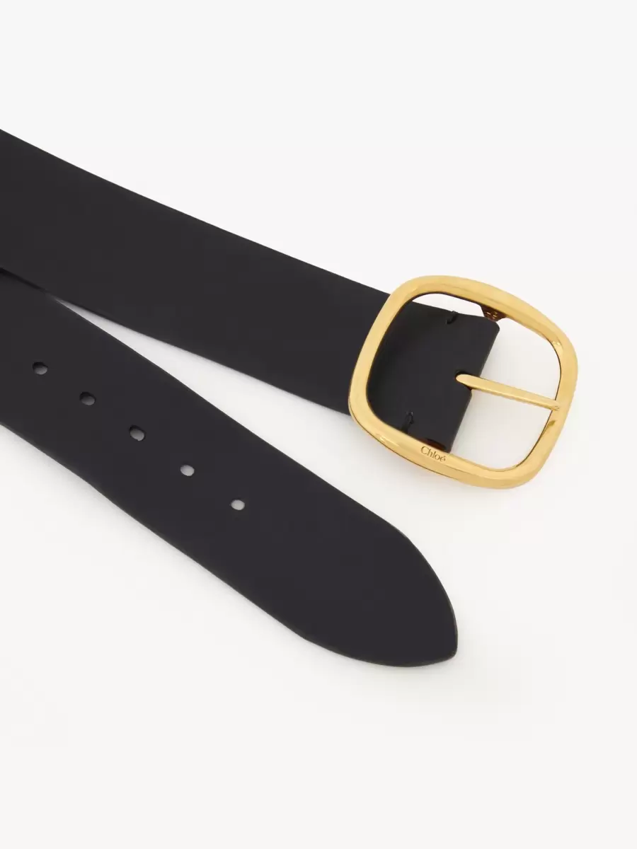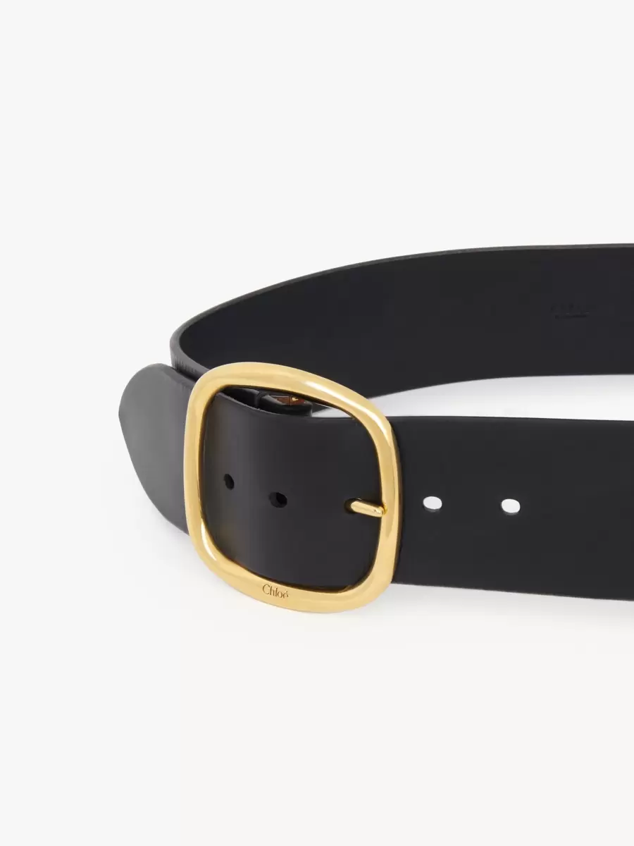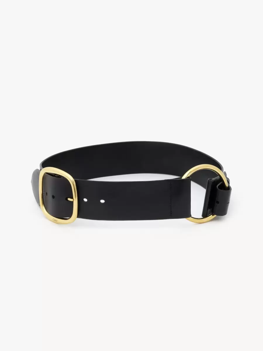 Chloé Anita leather belt in vintage-effect cowhide with a large gold-tone ring and Chloé-engraved buckle, rooted in the Maison’s heritage.