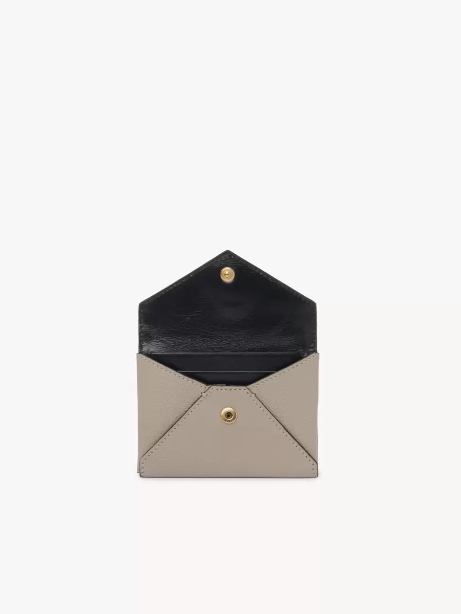 Crafted from grained goatskin, this Envelope card holder pairs a slim, elongated design with a practical snap button closure.