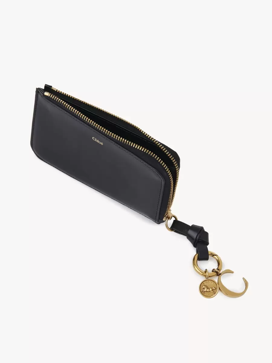 The Maison’s iconic Alphabet line includes this purse in shiny calfskin. Sized to fit your essentials, it features multiple card slots and a flat pocket at the back. A knotted leather link is embellished with Chloé’s signature golden initial and Horse Medal charms.