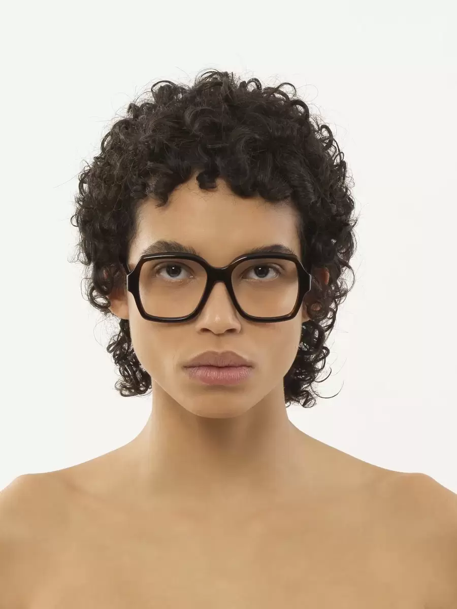 A fashion-forward, lower-impact style made of recycled acetate and bio-based nylon, these Gayia eyeglasses have a shiny square frame with rounded angles. A first in luxury eyewear, recycled acetate is an innovative material that allows for unique color combinations and limited edition pieces.
