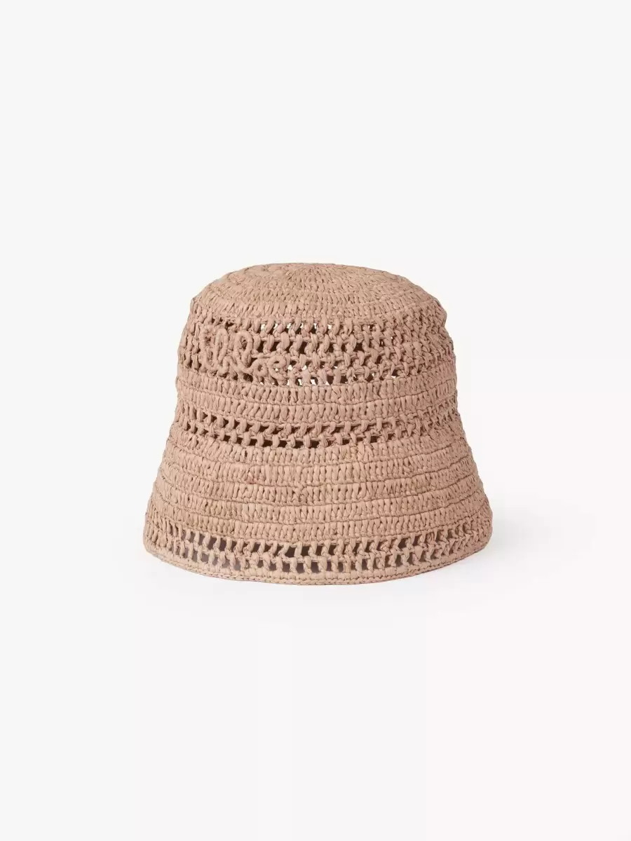 Chloé Sunset bucket hat in raffia. Inspired by the Maison’s heritage, a hand-embroidered tonal Chloé Iconic signature adorns the side.