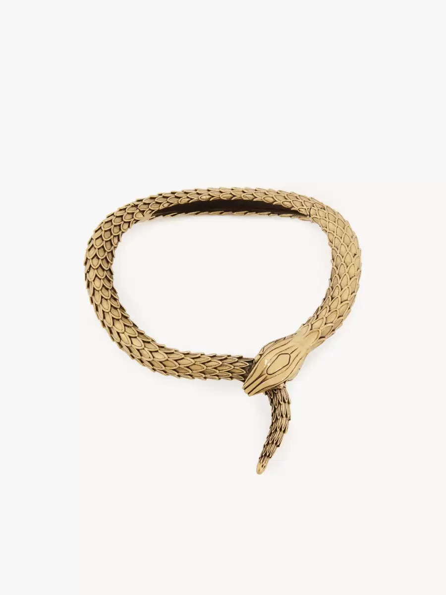 Wear the necklace slightly off-center to emulate the runway, and layer it with the Maison’s other snake necklace for a strong statement.