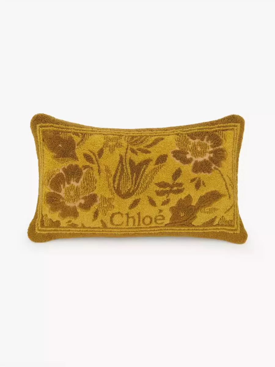 Chloé Plage beach pillow in cotton toweling, featuring a floral jacquard motif and the Chloé logo signature.