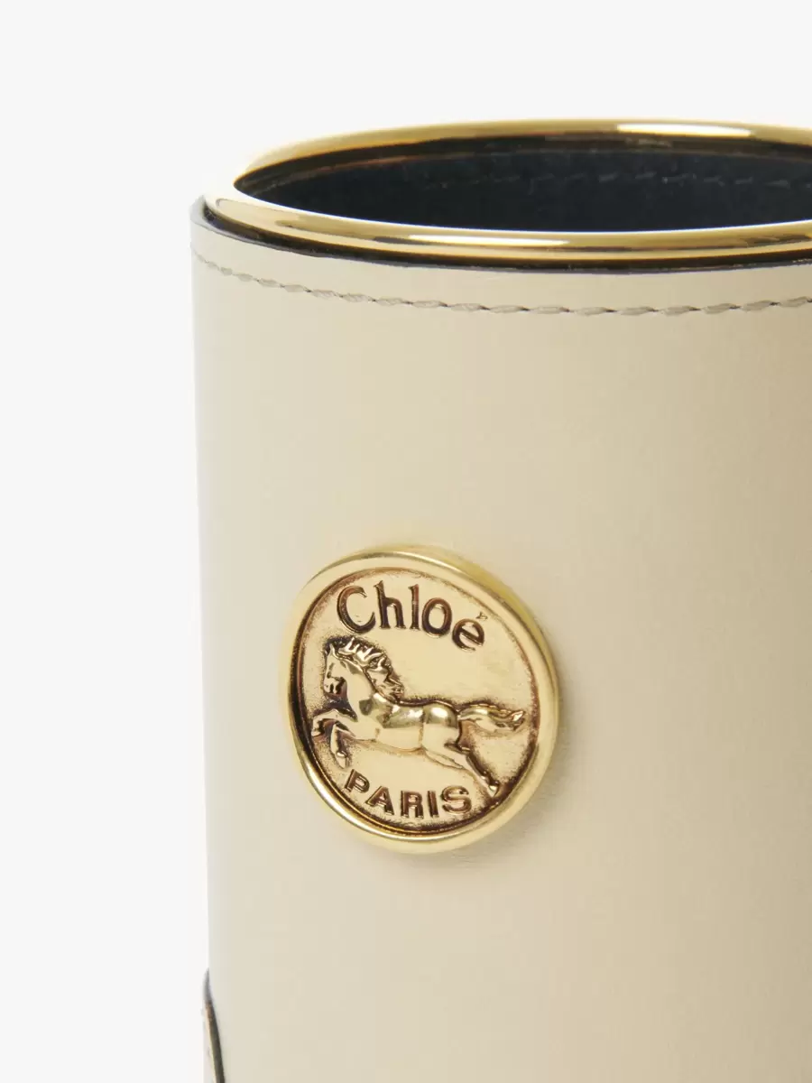 Crafted from natural shiny buffalo leather, this Chloé perfume case is designed to hold fragrances from the Atelier des Fleurs collection. The minimalist design is finished with the Maison’s golden Horse Medal in a nod to the equestrian world.