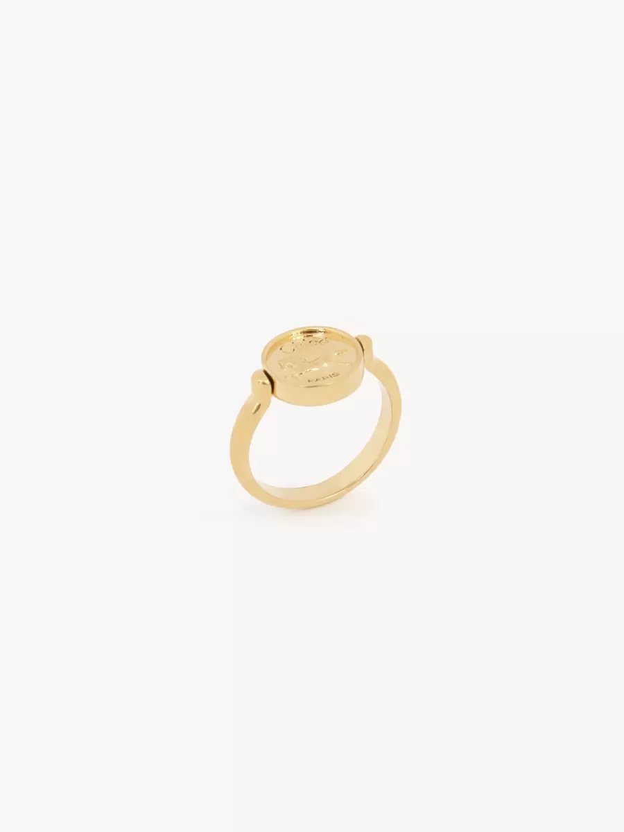Chloé Charms ring in vintage gold brass. Exploring the Maison’s DNA, the ring features a double-sided medal that can be flipped to display a Chloé logo engraving on one side, or the Chloé Horse medal on the other.