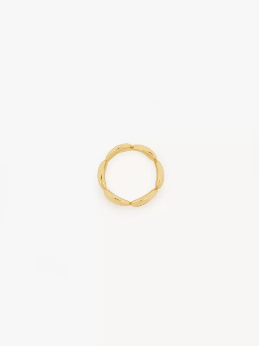 Chloé Iconic ring in vintage gold brass, inspired by a heritage chain belt. A chain ring showcasing the Chloé Iconic signature is combined with a second ring featuring a series of accents nodding to the “é” in Chloé.