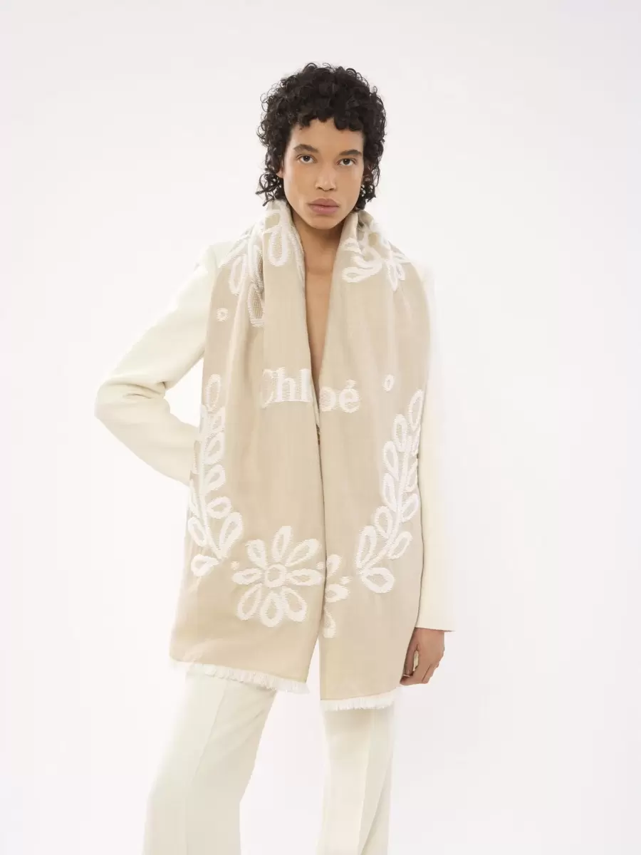 Crafted from a wool and silk broderie anglaise using an artisanal fil coupé technique, this stole is an everyday, trans-seasonal piece that features a contrast floral broderie anglaise motif and the Chloé logo.
