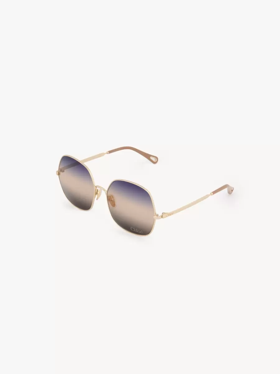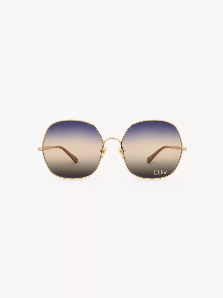 These Aly square sunglasses pair a lightweight graphic frame in shiny gold-tone metal with triple gradient lenses in a palette of blue, beige and brown. The Chloé logo finishes the left lens.