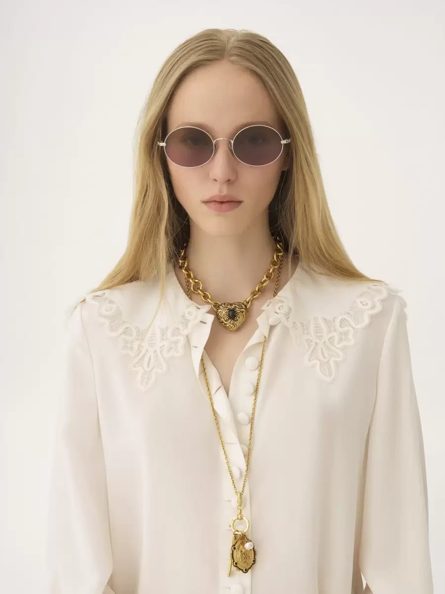 Drop-shaped openings at the temple tips make these sunglasses compatible with Chloé’s eyewear jewelry.