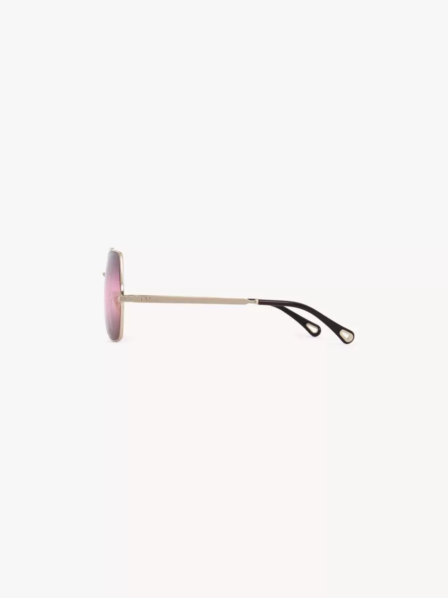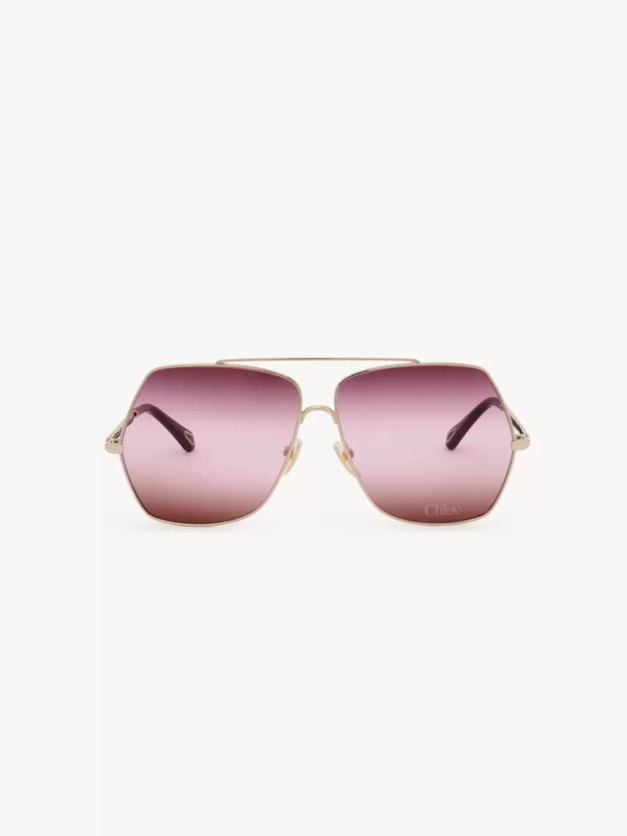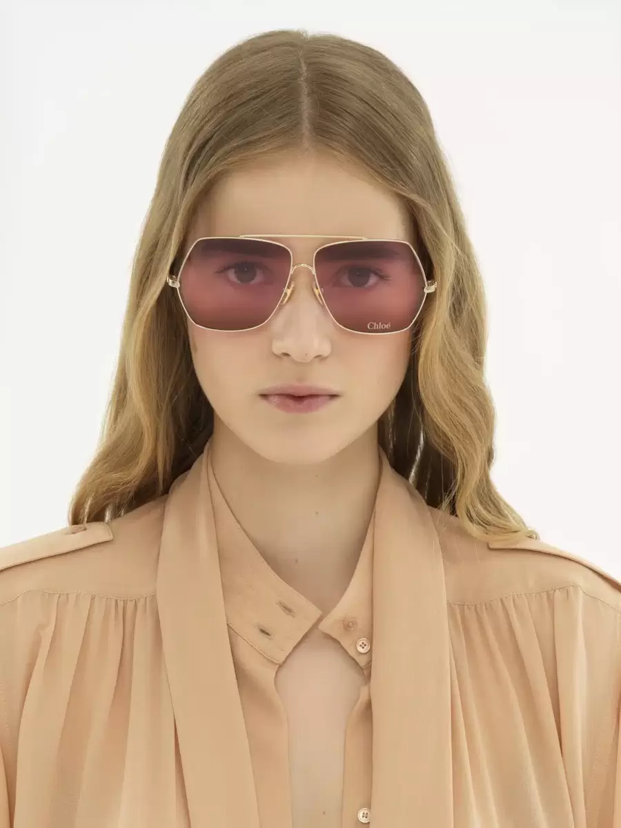 These Aly sunglasses offer a modern update on the classic aviator shape. Square frames in shiny gold-tone metal are set with triple gradient lenses in a palette of Bordeaux, pink and red. The Chloé logo finishes the left lens.