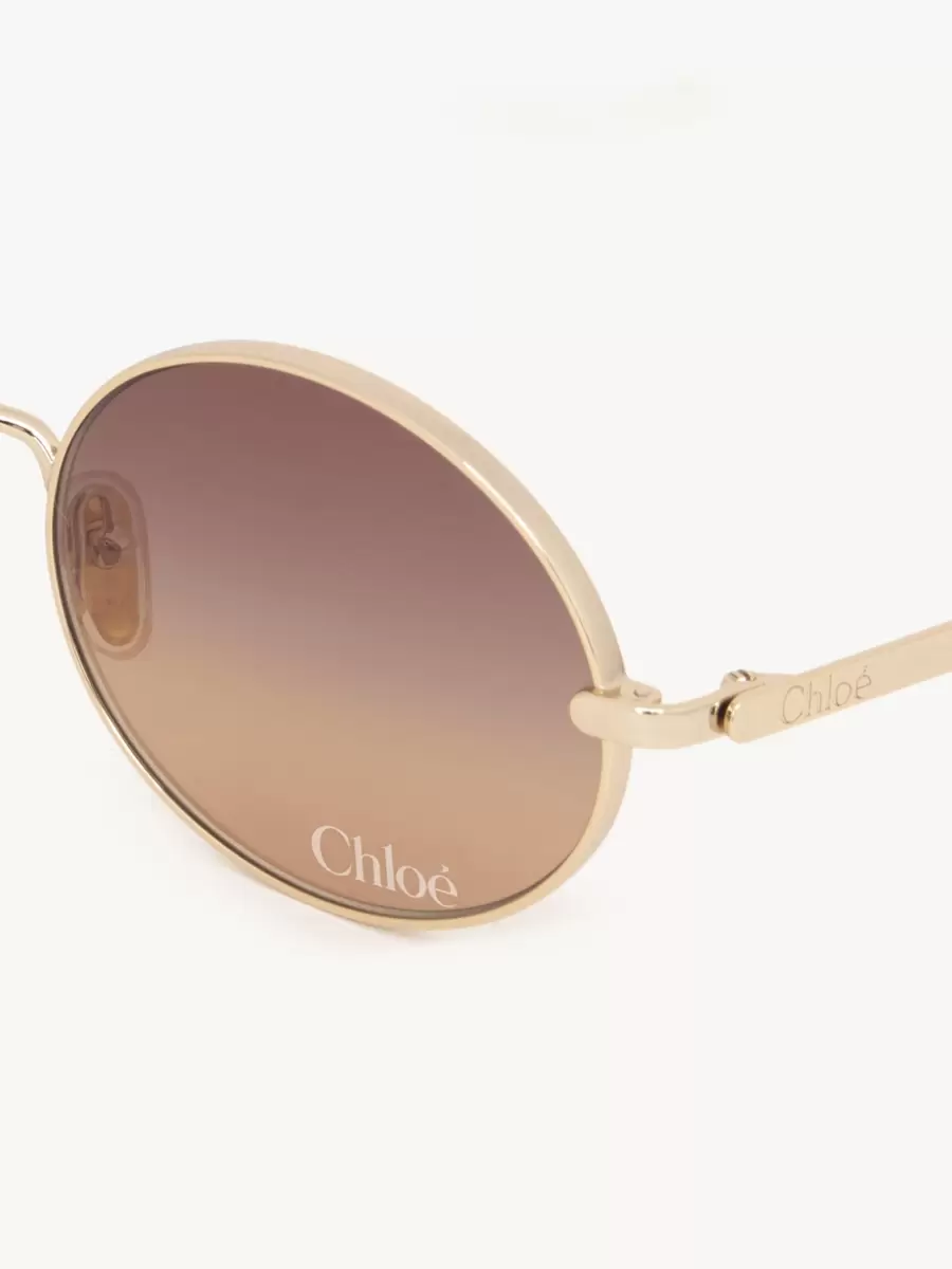 These small Aly oval sunglasses pair a lightweight frame in shiny gold-tone metal with triple gradient brown lenses. The Chloé logo finishes the left lens and temples.