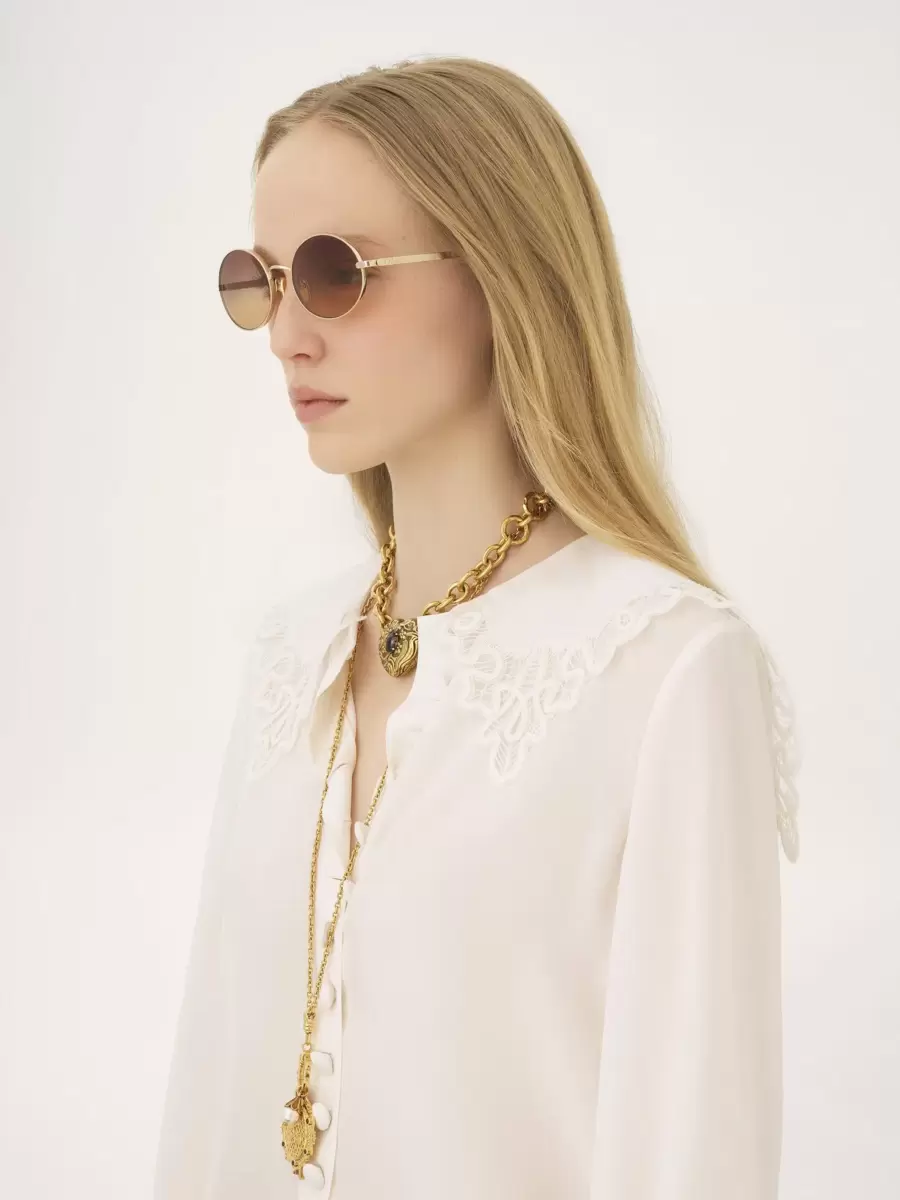 Drop-shaped openings at the temple tips make these sunglasses compatible with Chloé’s eyewear jewelry.