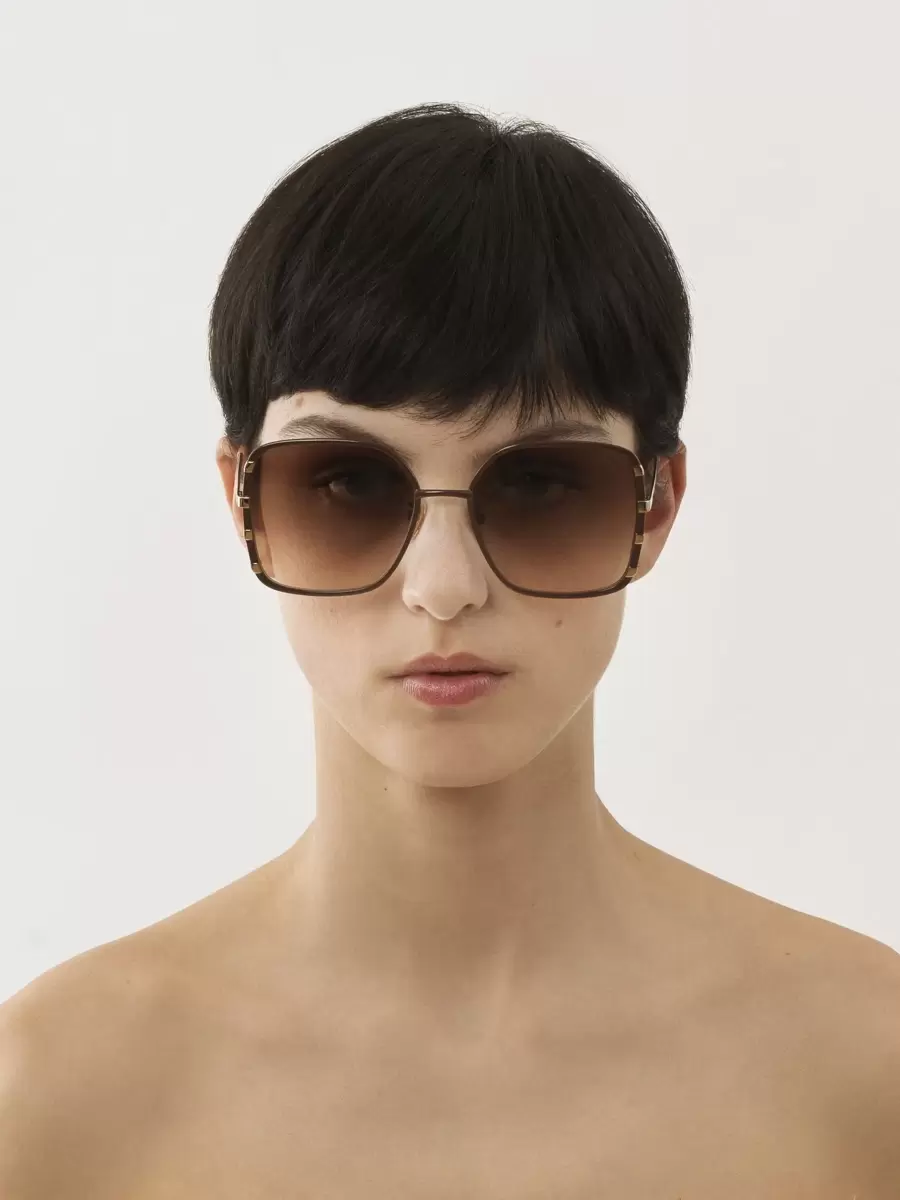 Timeless and elegant, the Celeste square sunglasses feature a brown metal frame accentuated with gold metal stripes. Soft gradient brown lenses enhance the classic appeal of this easy-to-wear women’s accessory.