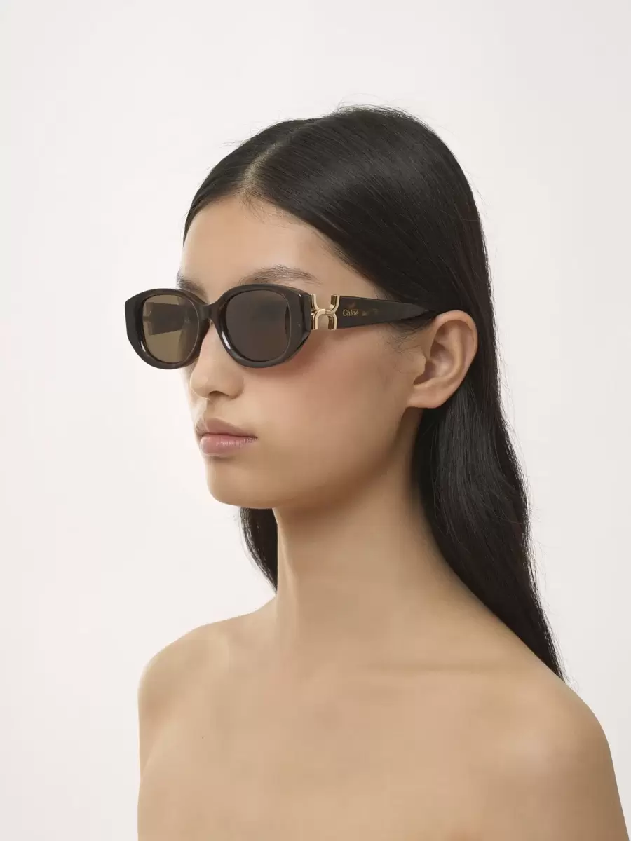 Exuding contemporary sophistication, these Marcie oval sunglasses are a new update to the iconic Chloé line. The sleek beveled frame in lower-impact acetate makes a bold statement, elevated with Marcie’s signature gold metal piece at the hinges.