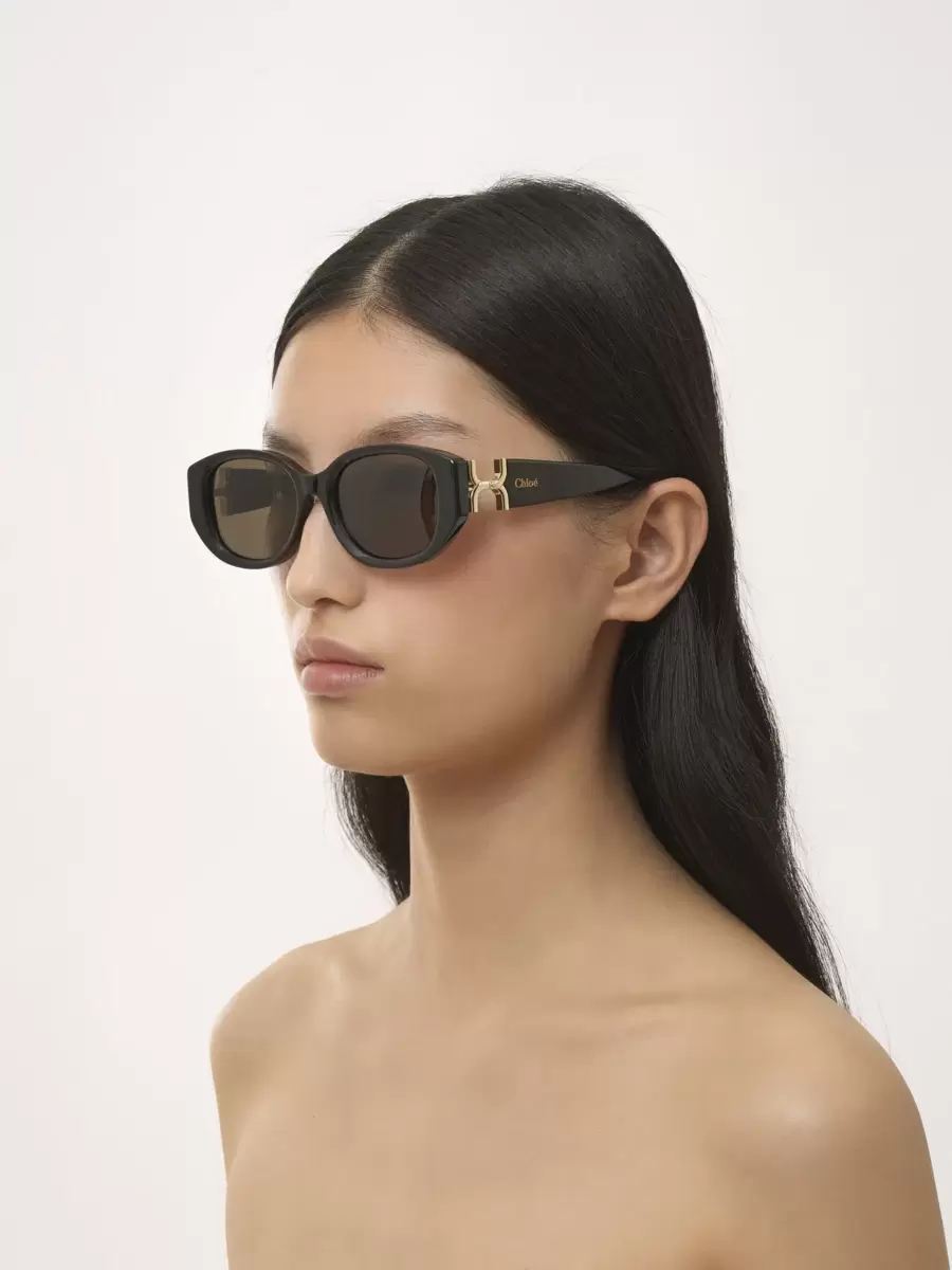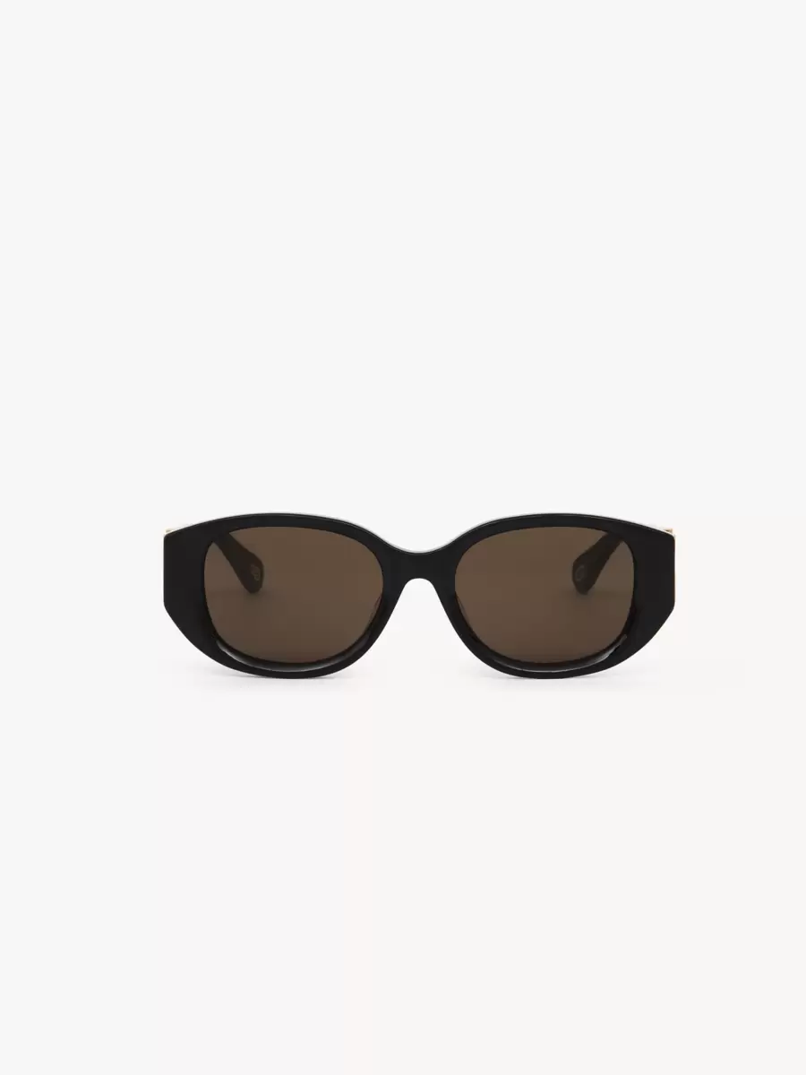 Exuding contemporary sophistication, these Marcie oval sunglasses are a new update to the iconic Chloé line. The sleek beveled frame in lower-impact acetate makes a bold statement, elevated with Marcie’s signature gold metal piece at the hinges.