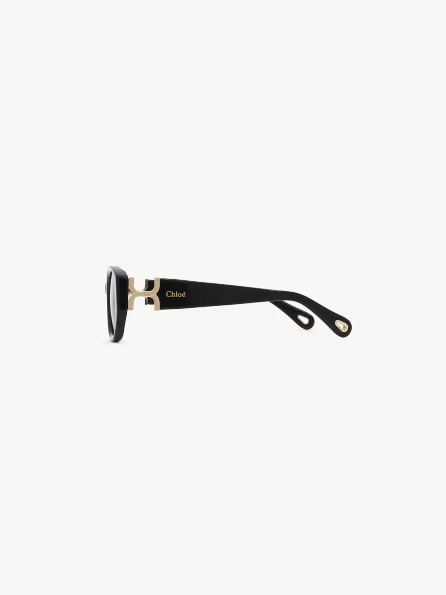 The glossy black frame pairs with solid brown lenses in bio-based nylon for a timeless allure. The Chloé logo details the left temple while drop-shaped openings at the temple tips make these women’s sunglasses compatible with Chloé’s eyewear jewelry.
