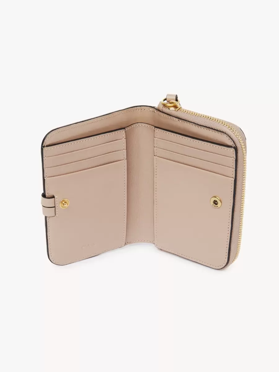This Chloé wallet is made from natural leather with a very light finish. Keep away from water (rain). The wallet may develop smooth or light halos. If the leather gets wet, dry it with a soft white cloth to absorb water. With use, the leather may become marked.