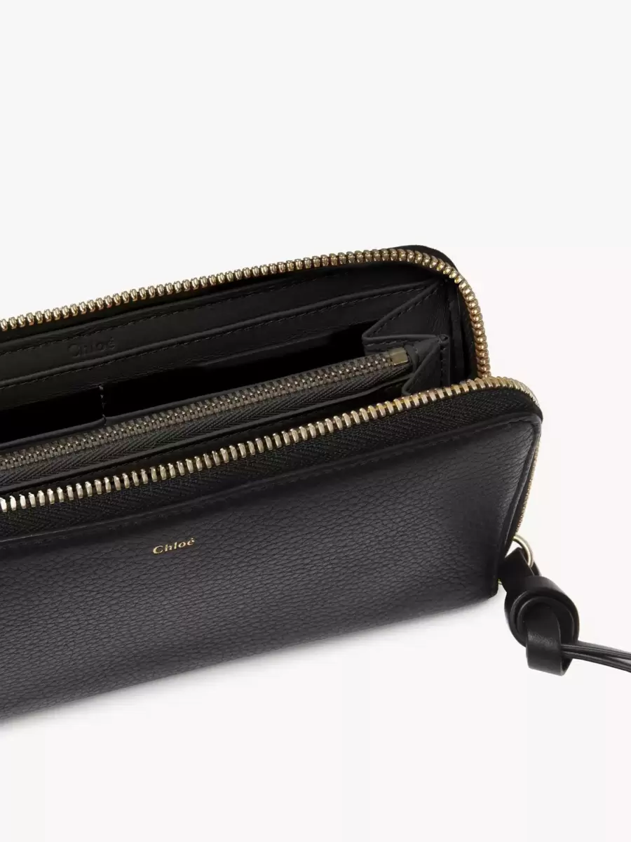 With a little creativity, the wallet’s clean lines can be beautifully embellished with handpicked golden initial charms featuring the Maison’s striking design. Delicate leather links with a ring and Chloé medal secure the initials.