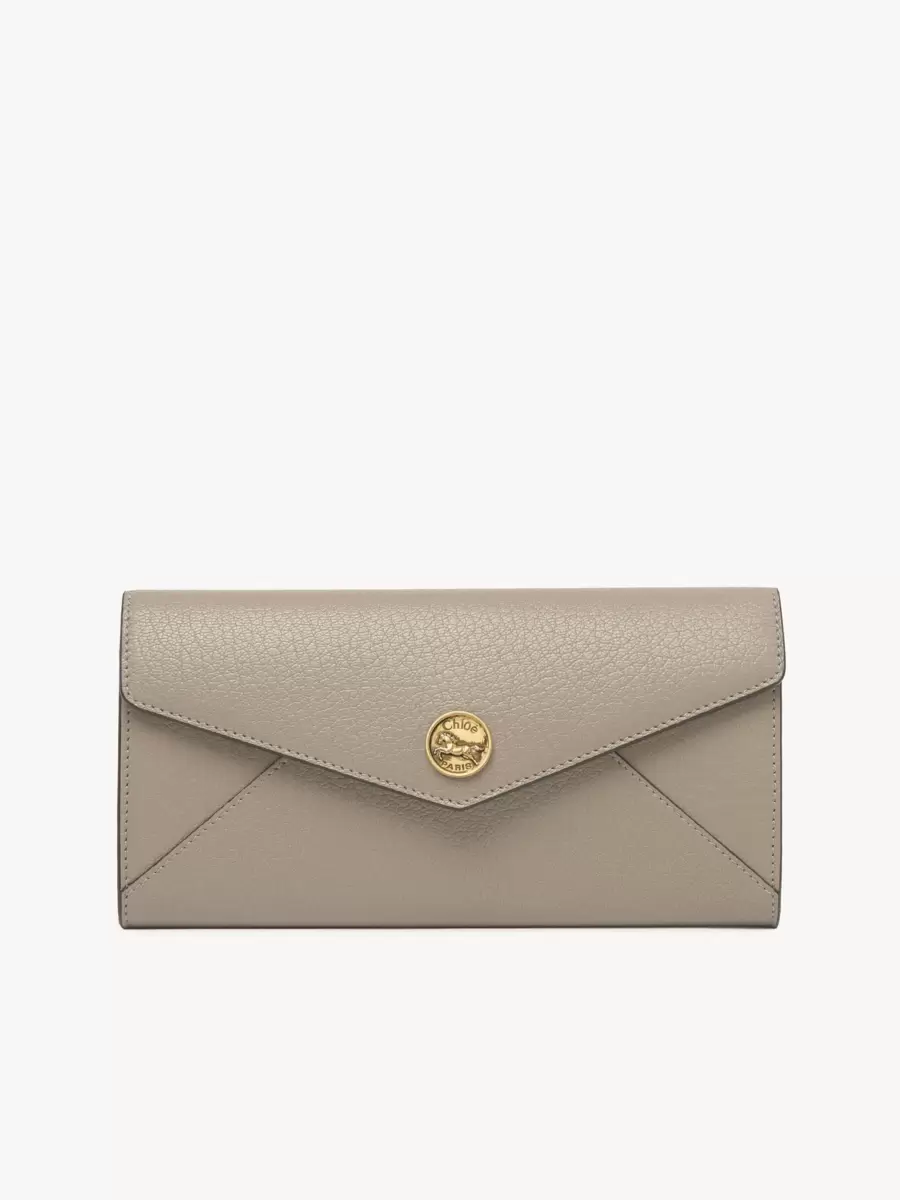 Crafted from grained goatskin, this Envelope long wallet with flap features two main compartments, 12 card slots and a zipped outer pocket.