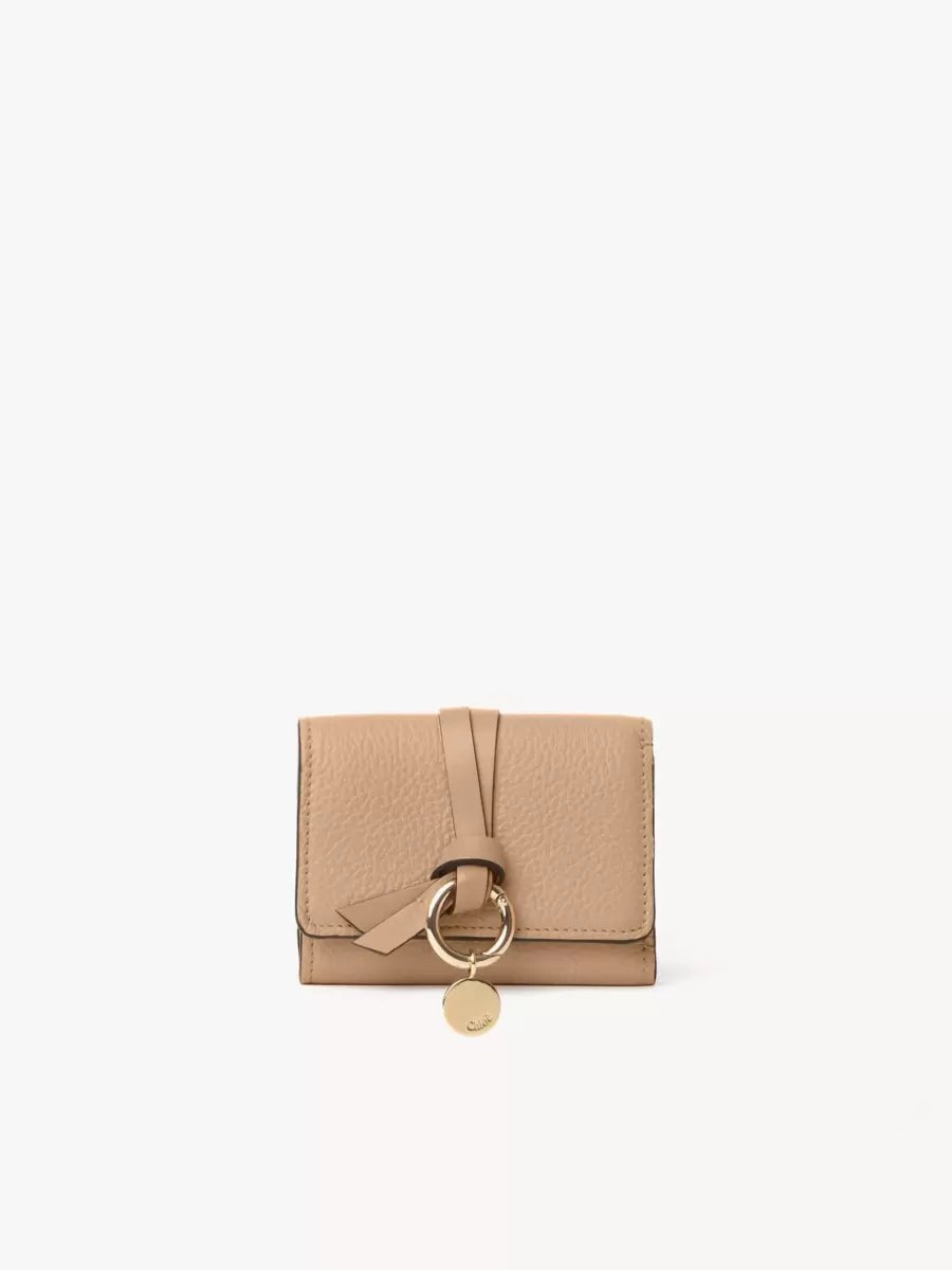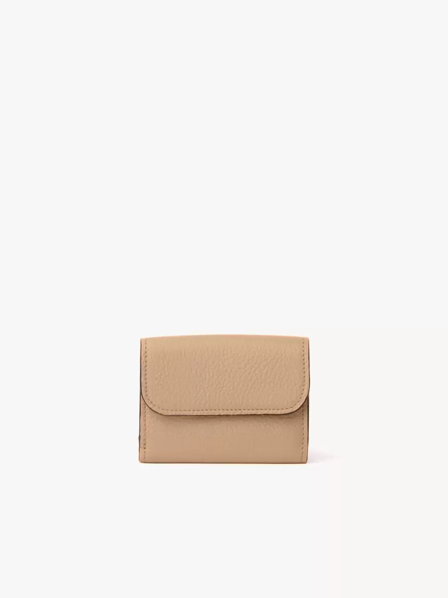 The Maison’s iconic Alphabet line includes this mini tri-fold wallet in grained and shiny calfskin. Sized to hold the essentials, it features a single bill compartment and a coin compartment with flap.