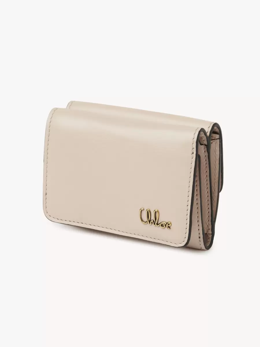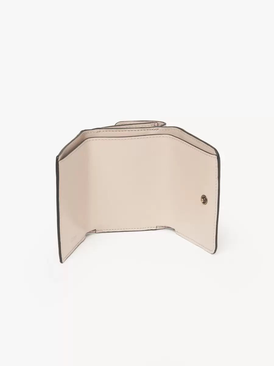 Crafted from shiny calfskin, the mini Chloé Iconic tri-fold wallet combines a minimalist design with a metallic signature from the Maison’s archives.