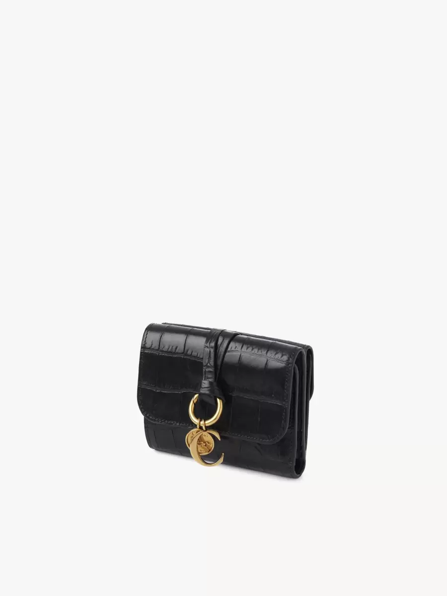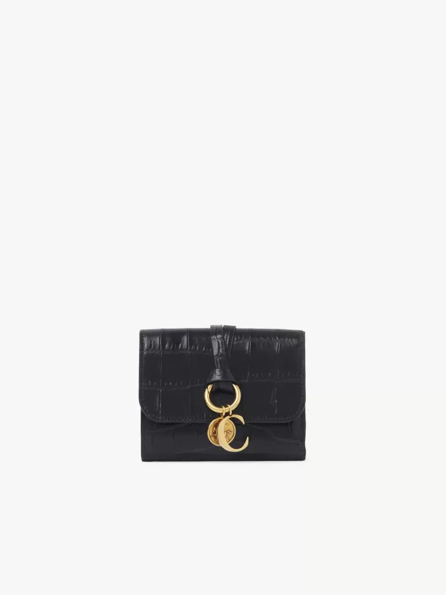 Small Alphabet tri-fold in croco-effect leather