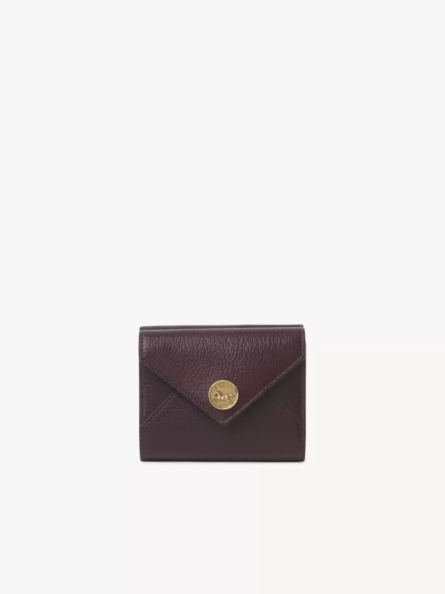 Crafted from grained goatskin, this small Envelope tri-fold wallet features a note/bill compartment, a coin pocket and six card slots.