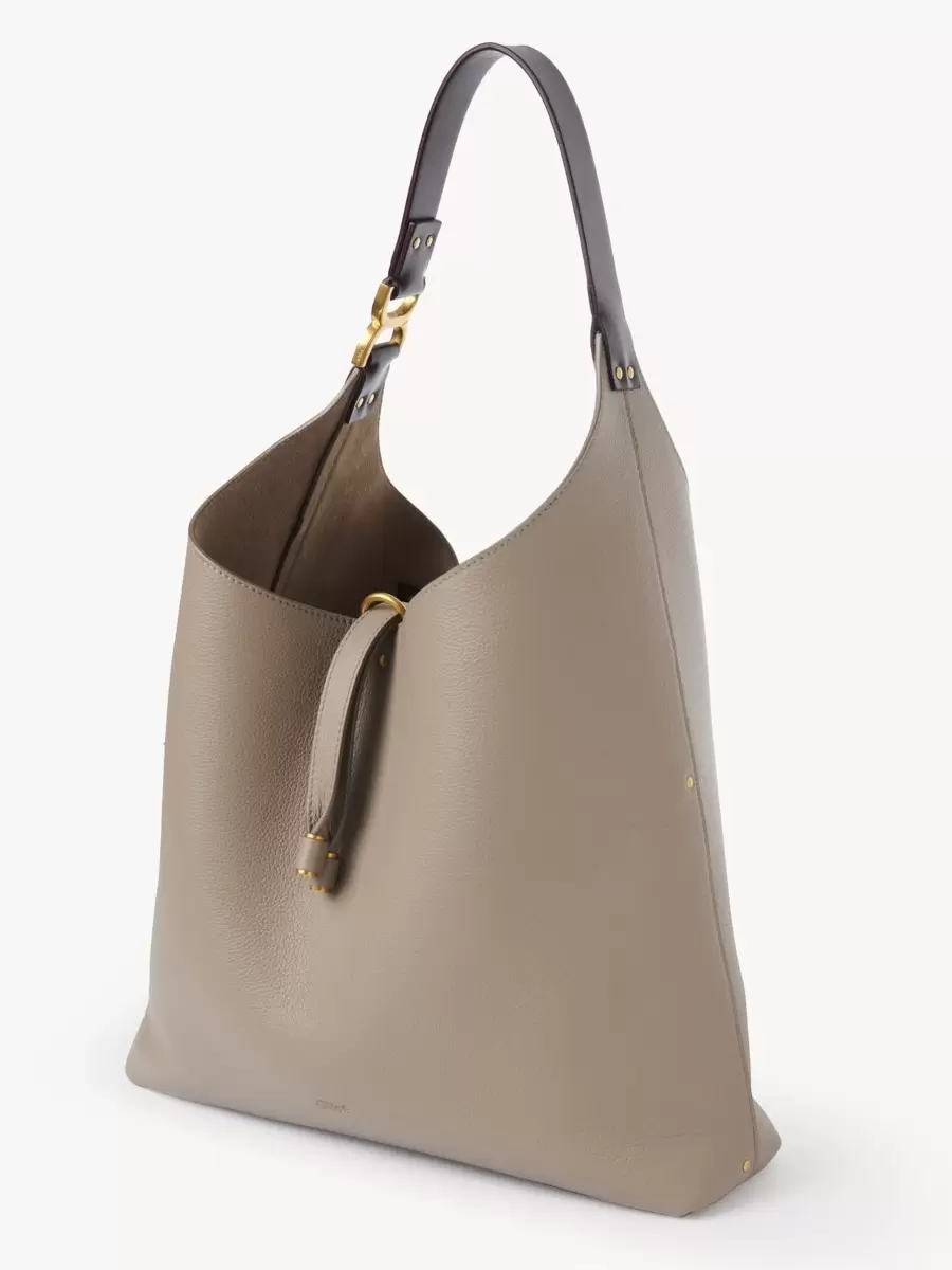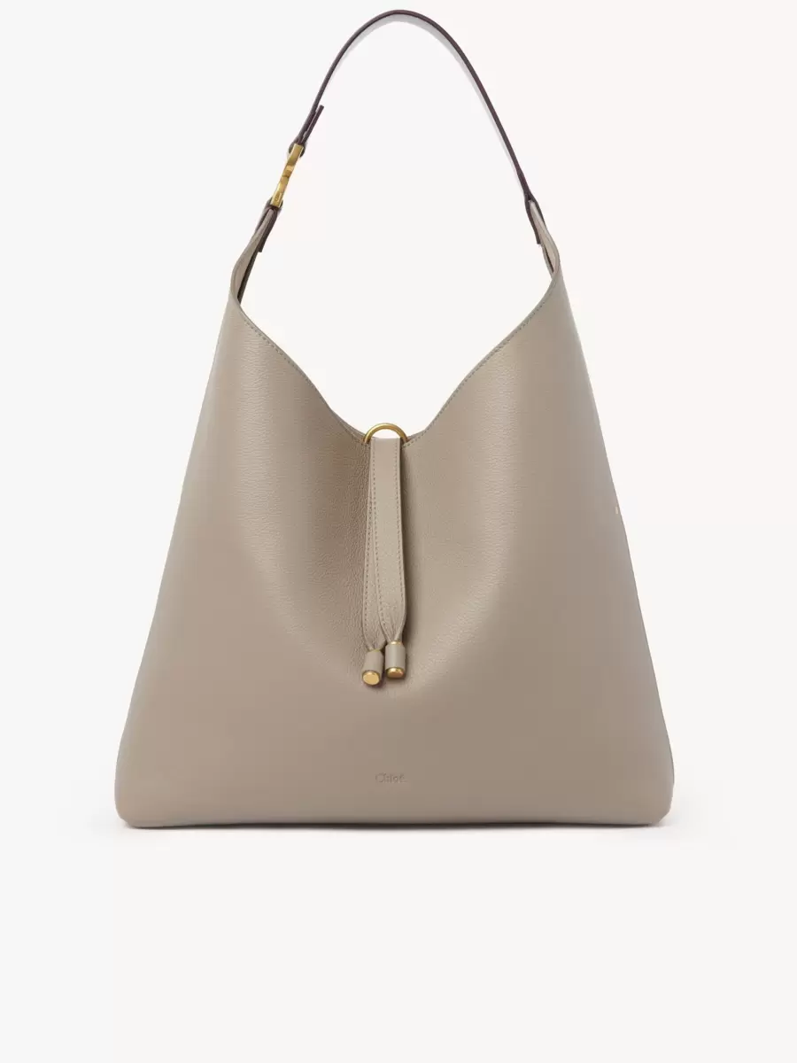 The Maison’s iconic Marcie line is expanded with this roomy hobo bag, matching clean lines with a soft and slouchy silhouette. Crafted from grained calfskin, the day bag features the line’s signature metallic piece on the leather handle.