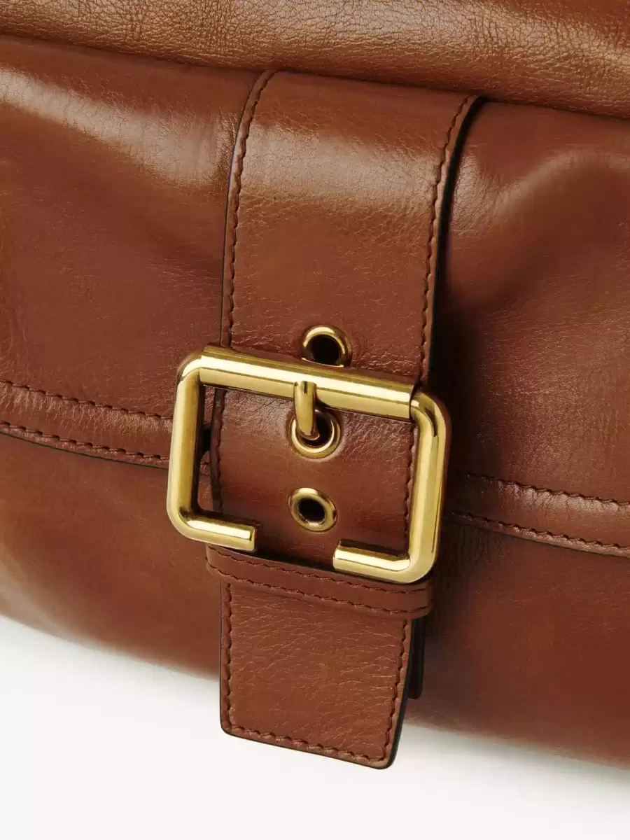 This Camera bag is crafted from natural shiny buffalo leather. Its multiple pockets are embellished with revamped buckles from the iconic Paddington bag.