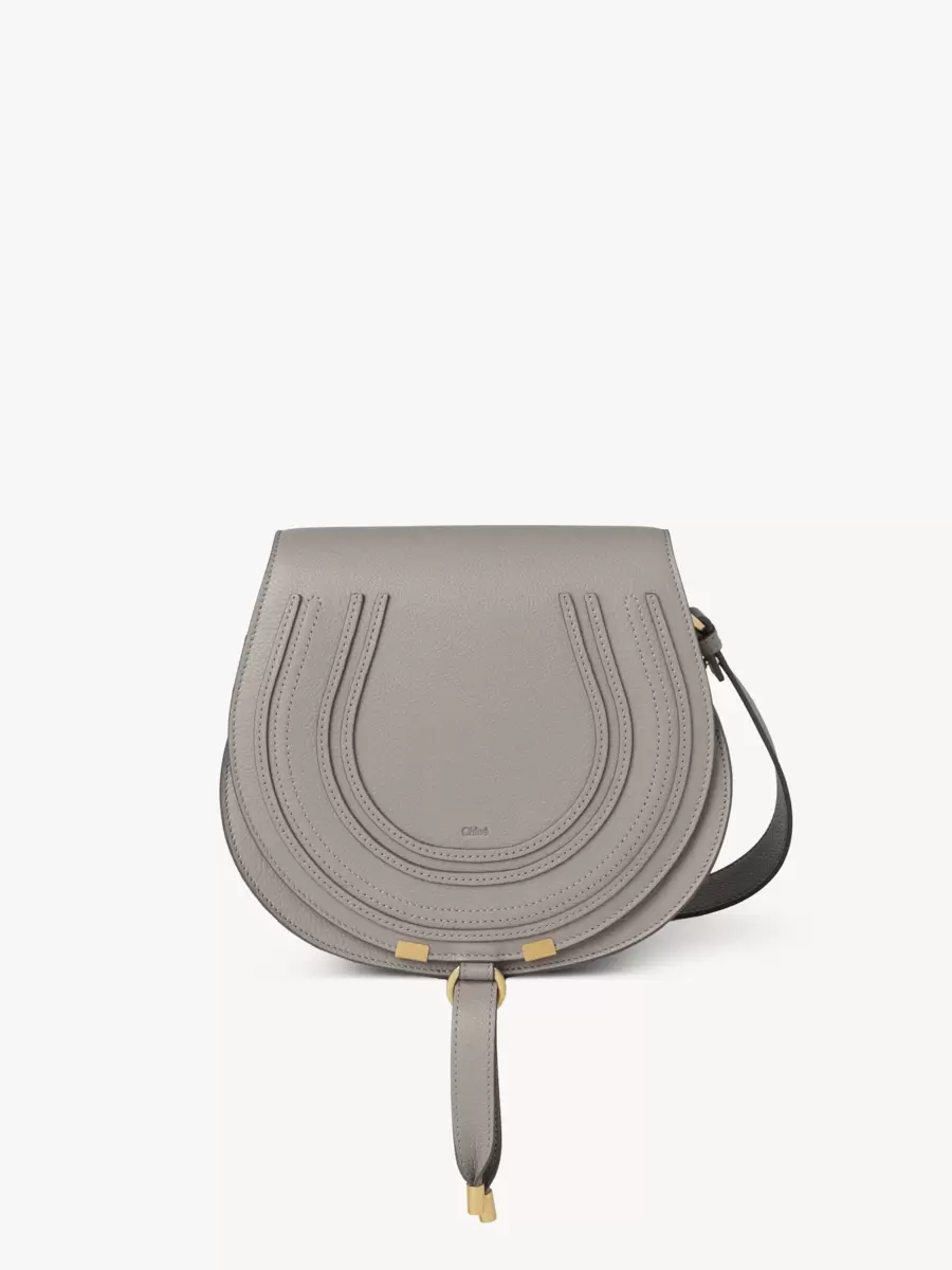 This Marcie saddle bag is crafted from grained calfskin with a rounded silhouette and a clean top line. The flap features the line’s iconic saddle stitching, secured with signature dangling leather tassels.