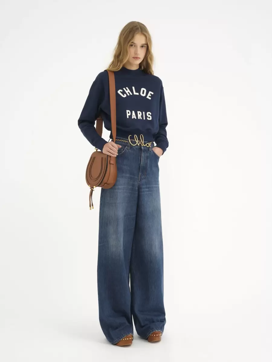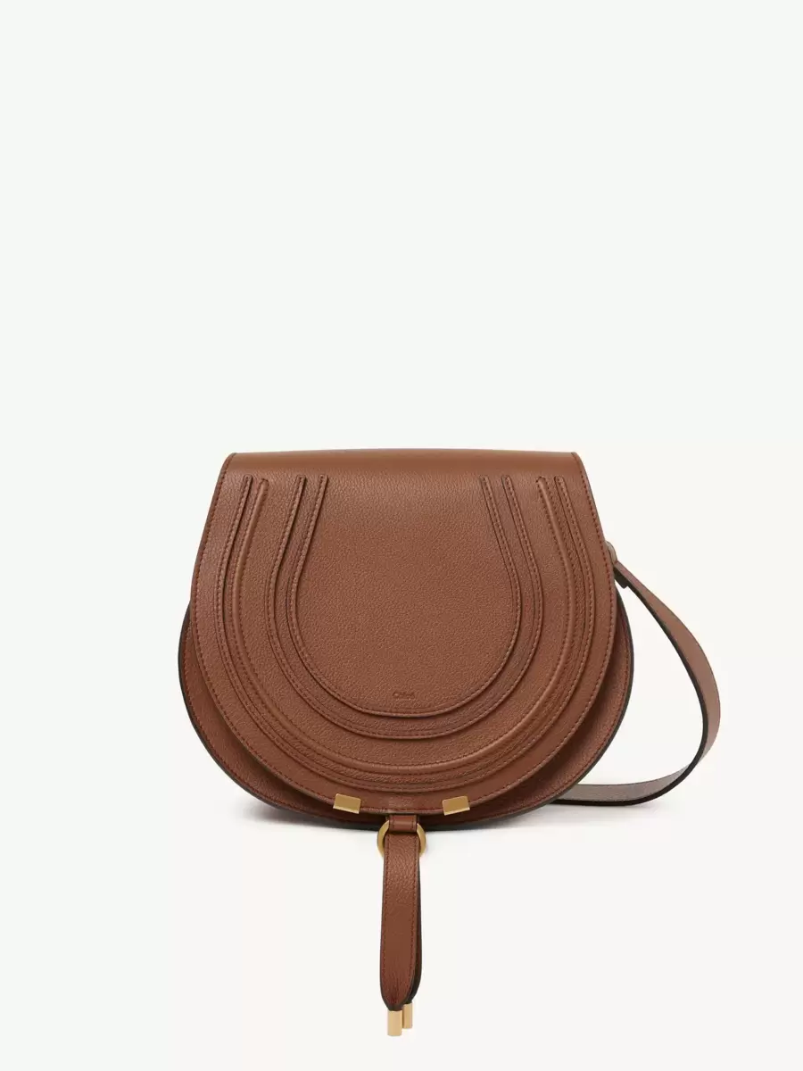 This Marcie saddle bag is crafted from grained calfskin with a rounded silhouette and a clean top line. The flap features the line’s iconic saddle stitching, secured with signature dangling leather tassels.