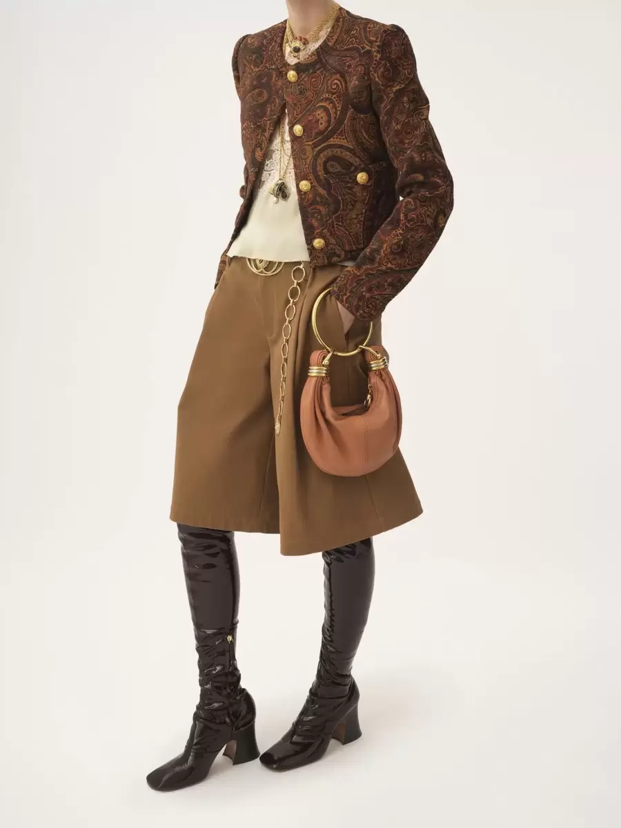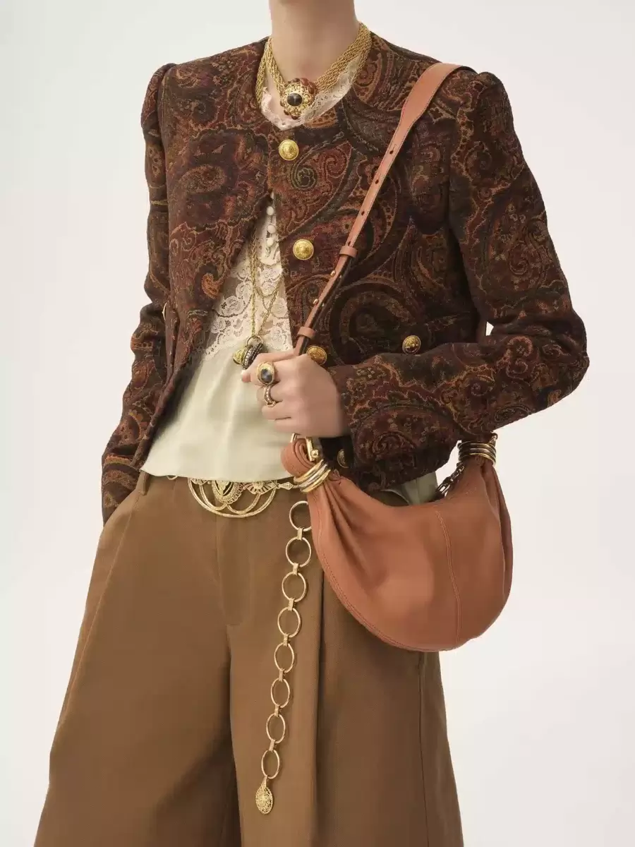 Inspired by the Maison’s Archives, this mini Bracelet Hobo bag is crafted from grained buffalo leather. The supple, rounded shape is elevated by a bracelet handle and stacked bi-color rings at the ends.