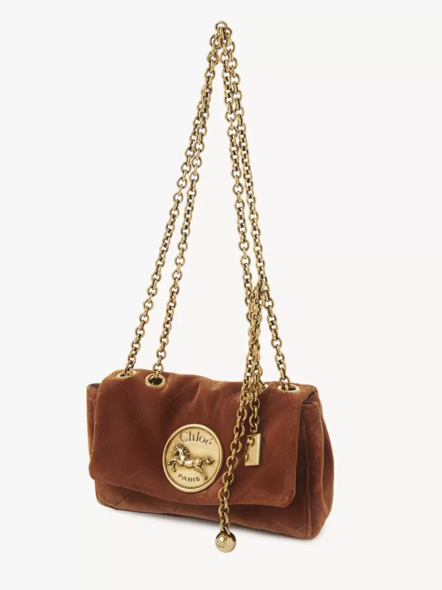 Crafted from quilted velvet, this small Chloé Heritage shoulder bag is inspired by the Maison’s codes. The supple, curved construction is embellished with gold-tone hardware, combining a signature Horse Medal closure with dangling charms.