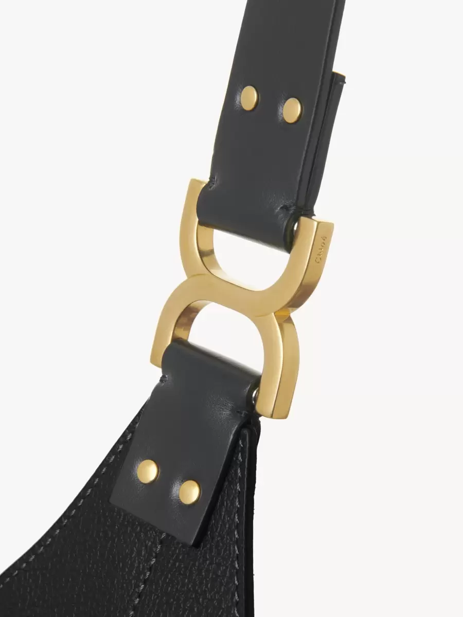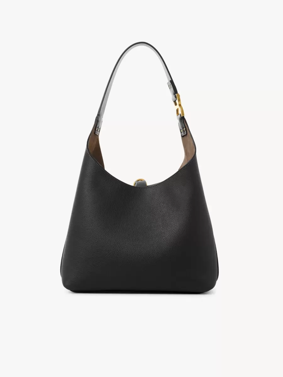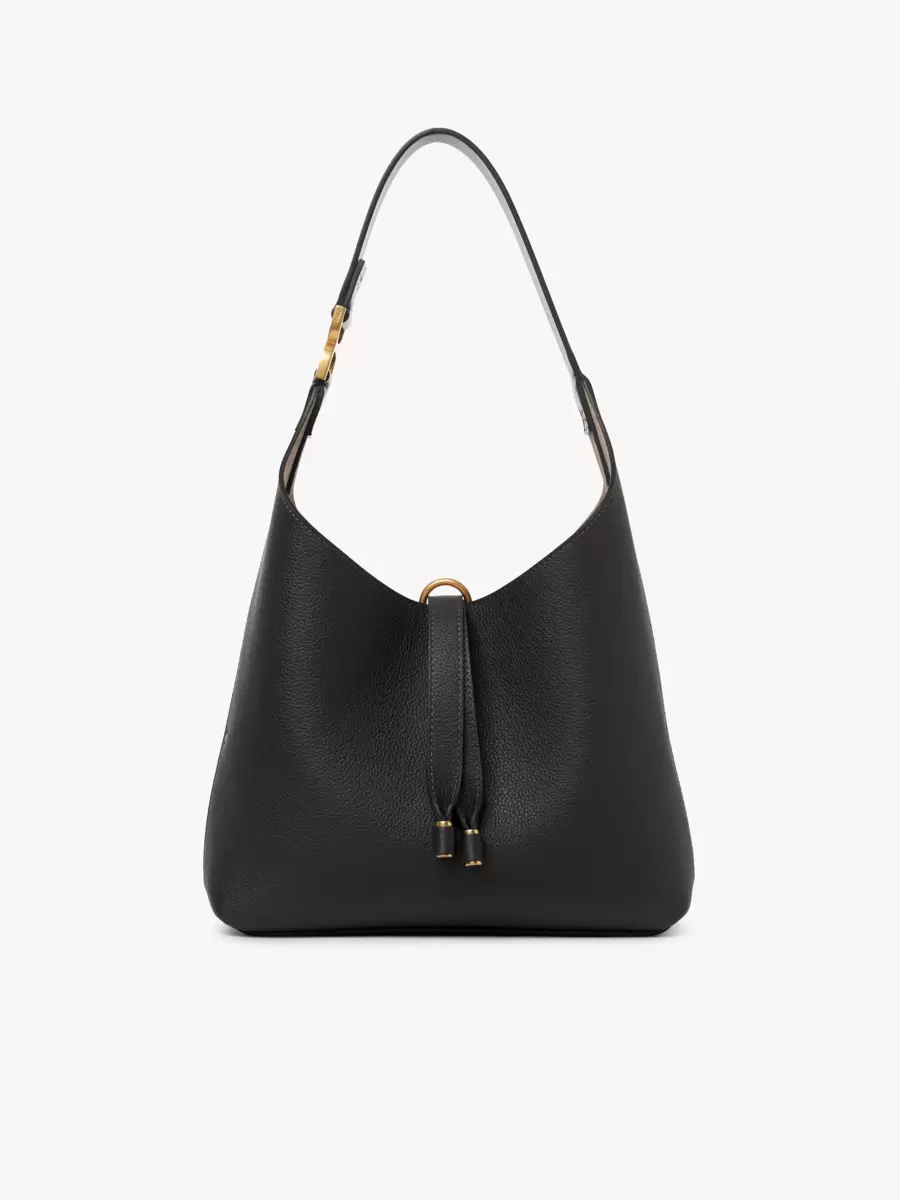 This small Marcie hobo bag has a slouchy, minimalist silhouette. Crafted from grained calfskin, it features a contrasting studded handle embellished with the line’s iconic gold-tone metallic piece. Signature leather tassels secure its suede calfskin interior.