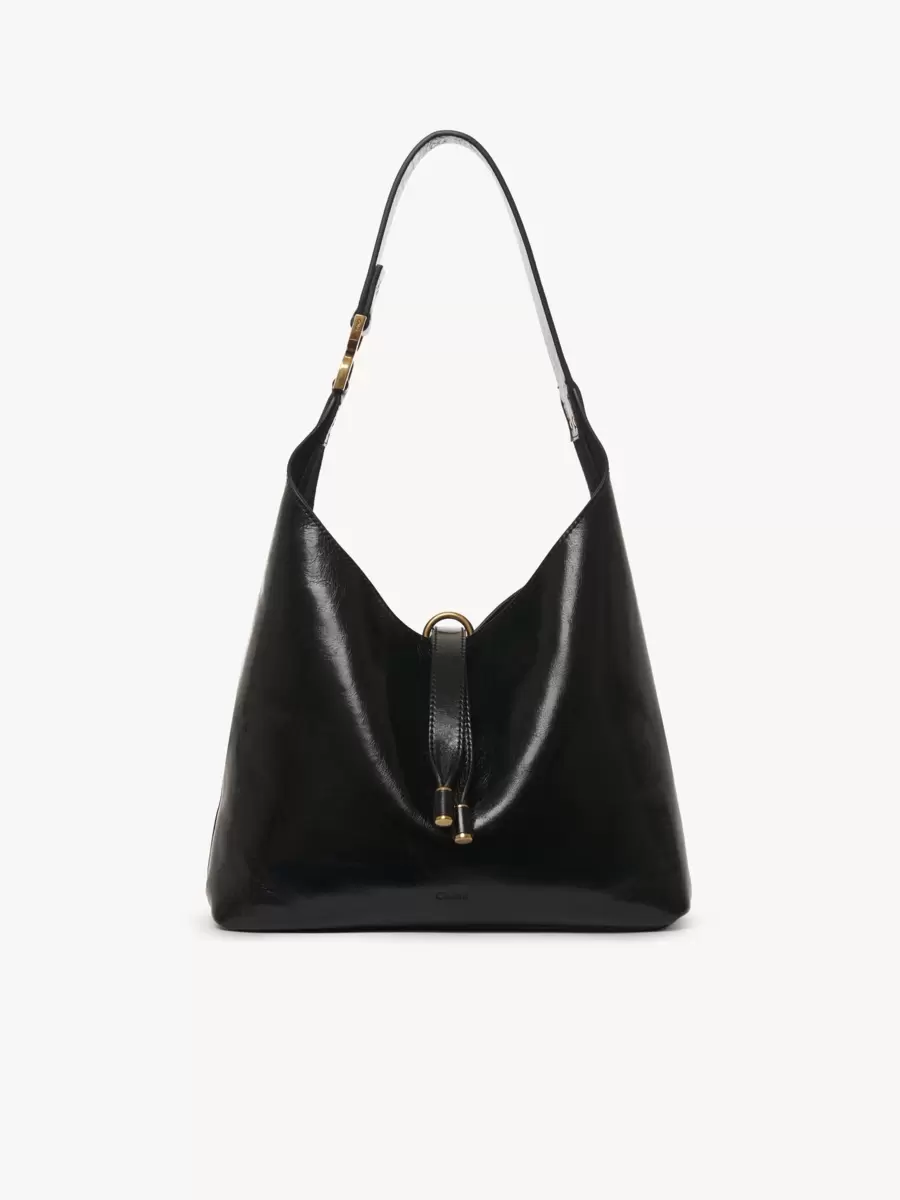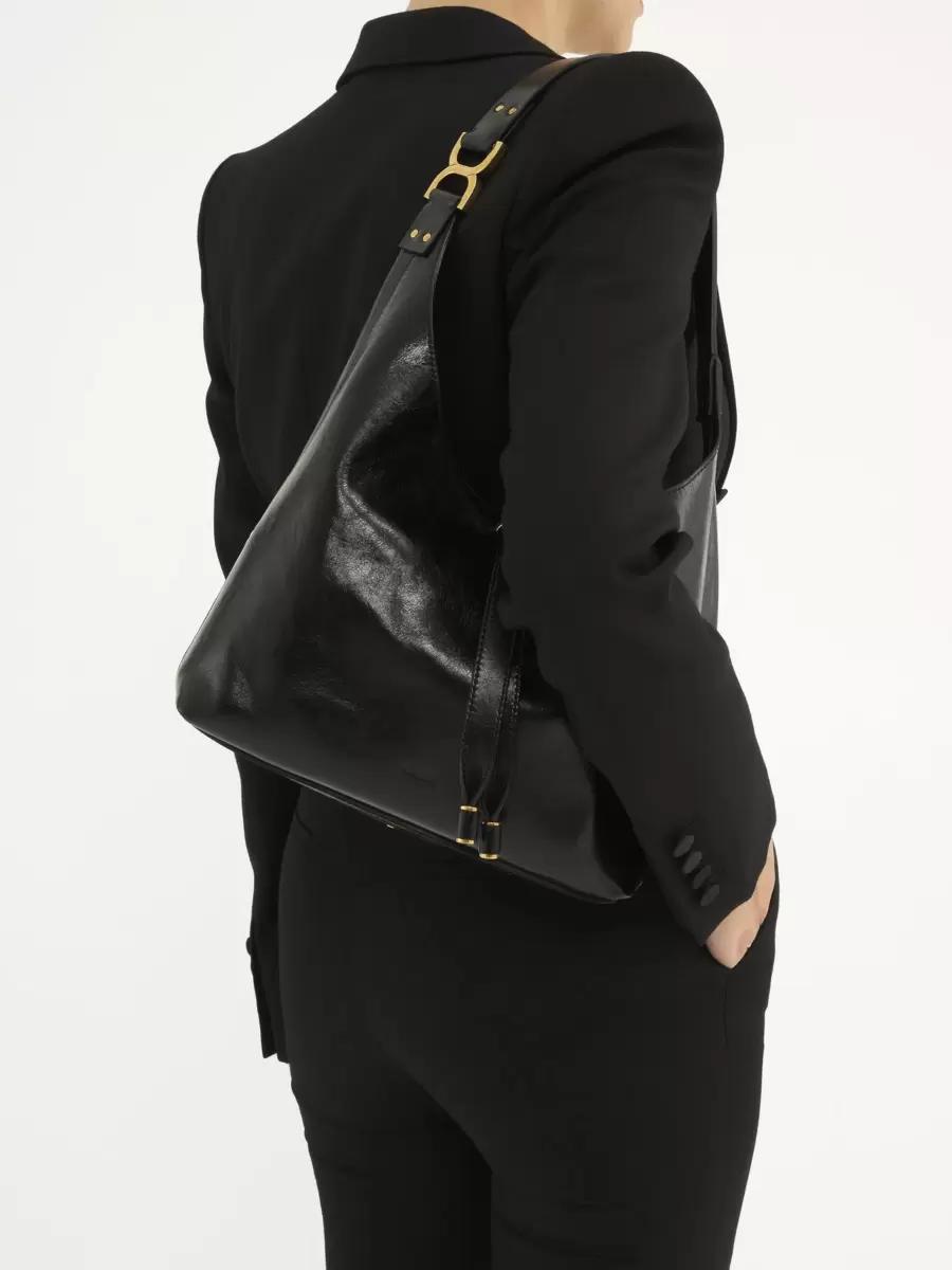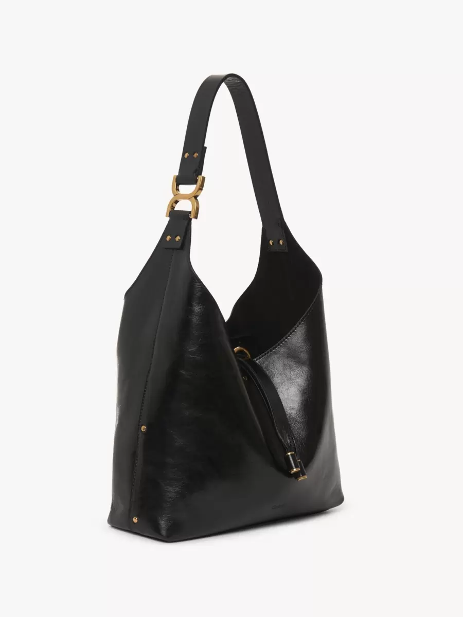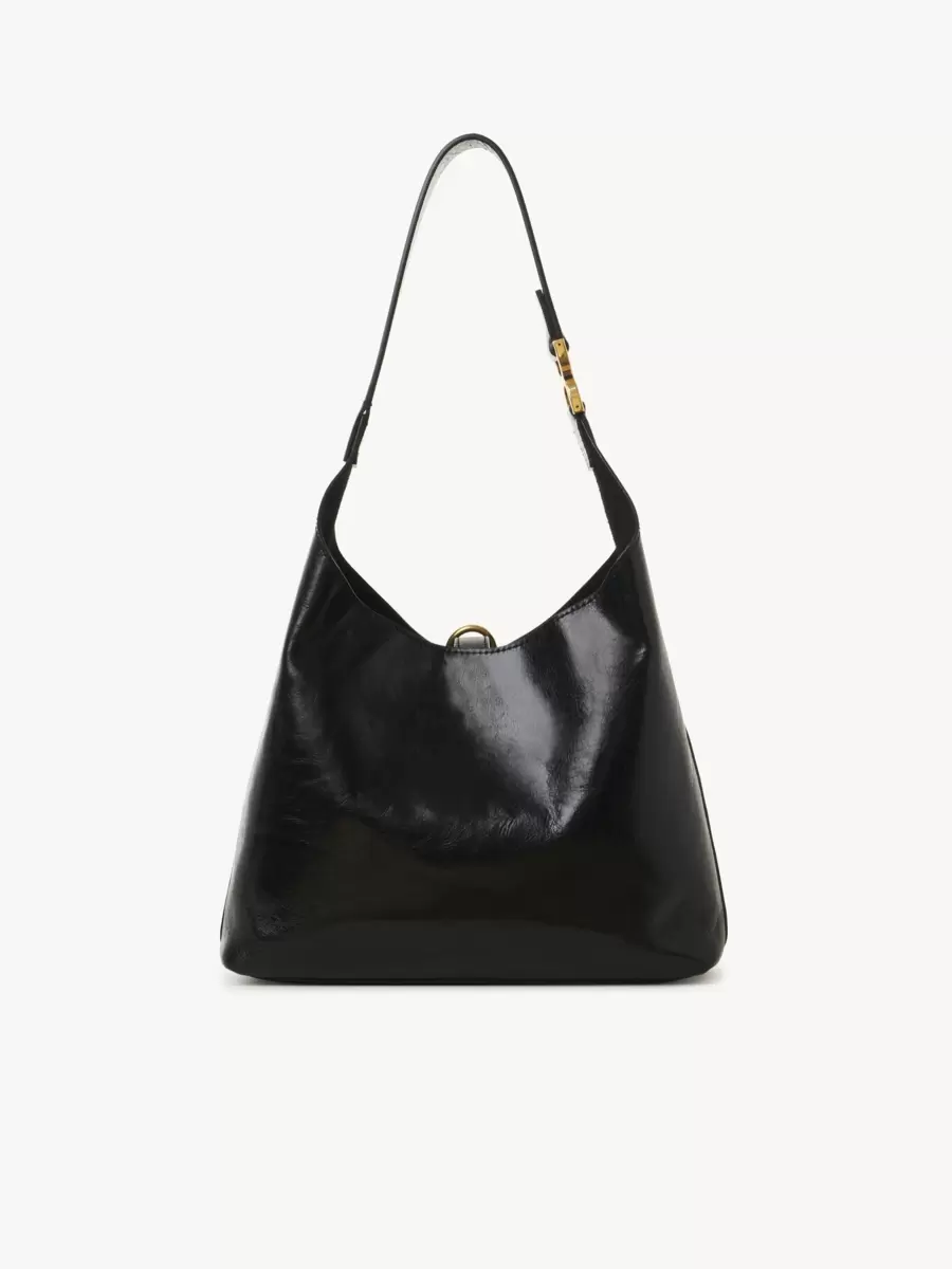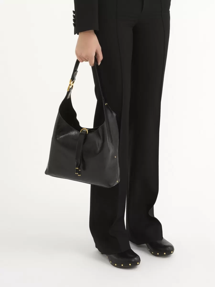 This small Marcie hobo bag has a slouchy, minimalist silhouette. Crafted from shiny calfskin, it features a contrasting studded handle embellished with the line’s iconic gold-tone metallic piece. Signature leather tassels secure its suede calfskin interior.