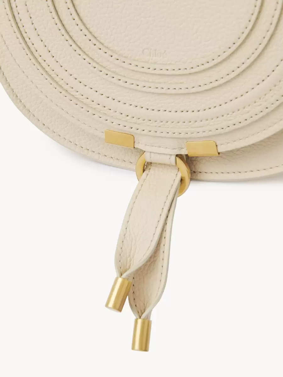 This small Marcie saddle bag is crafted from grained calfskin with a rounded silhouette and a clean top line. The flap features the line’s iconic saddle stitching, secured with signature dangling leather tassels.