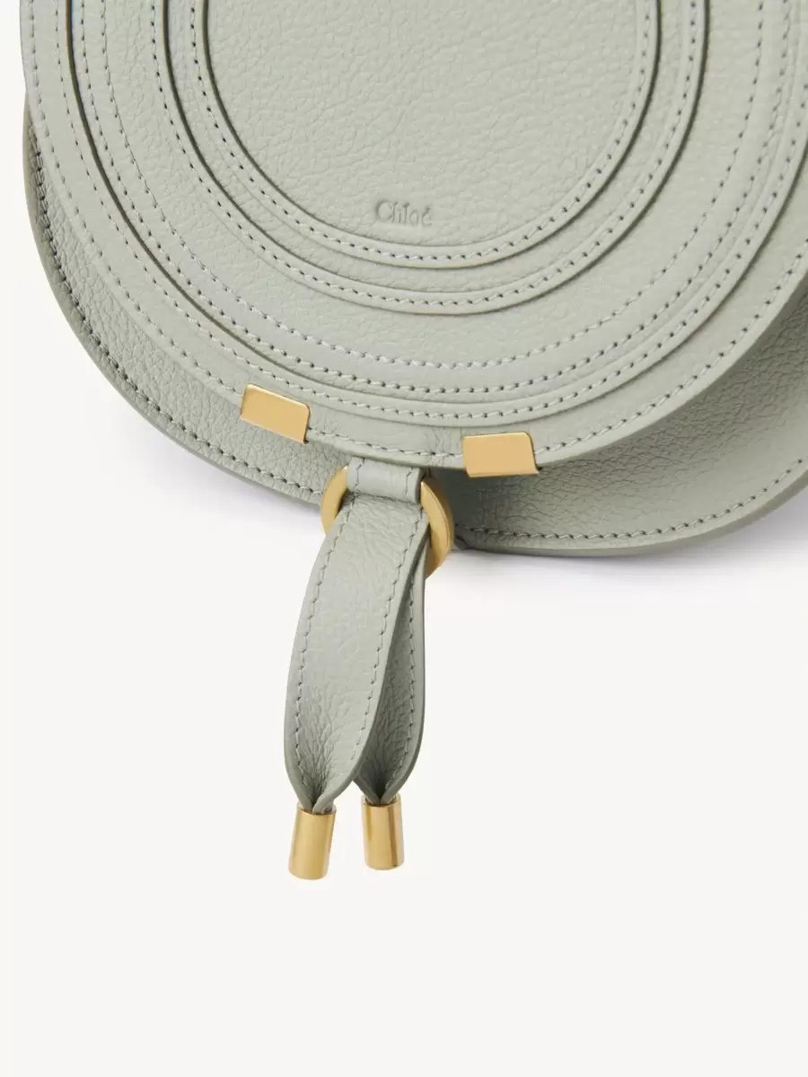This small Marcie saddle bag is crafted from grained calfskin with a rounded silhouette and a clean top line. The flap features the line’s iconic saddle stitching secured with signature dangling leather tassels.