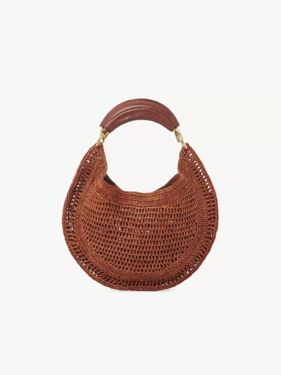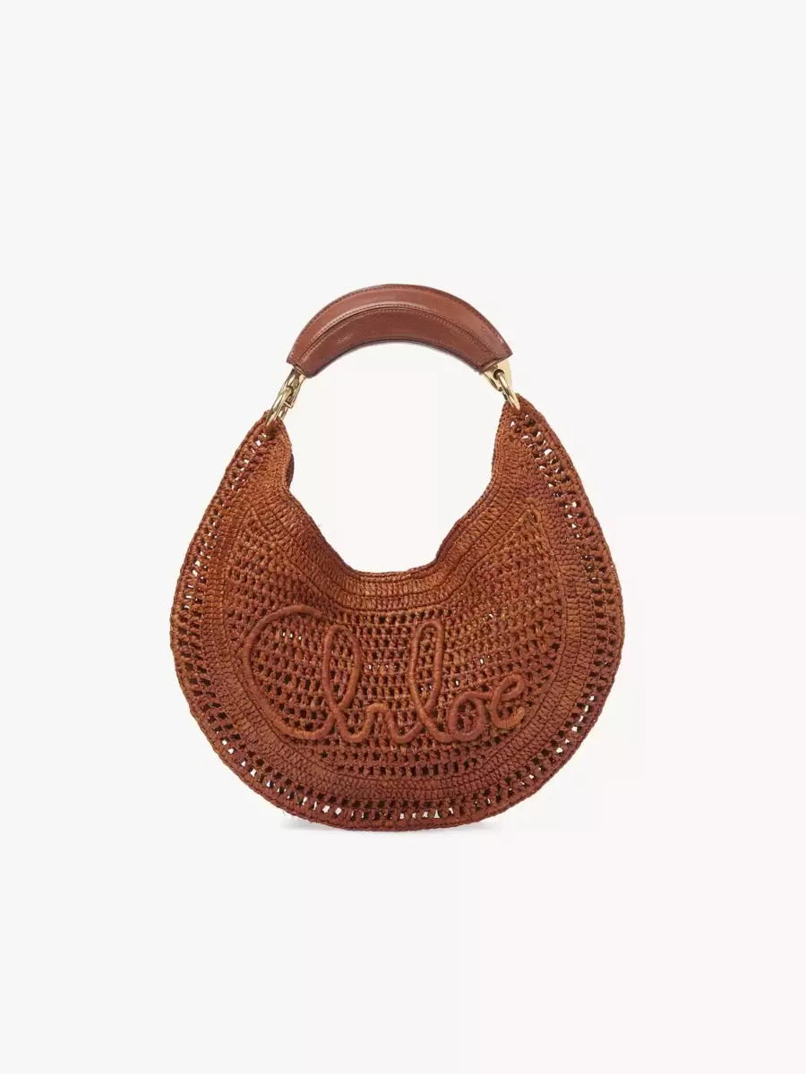 The Summer Banana hobo bag was crafted from raffia and calfskin by a single artisan over 4 days in collaboration with Made For A Woman. The curved silhouette features a banana-shaped handle and a handwritten signature inspired by the Chloé heritage.