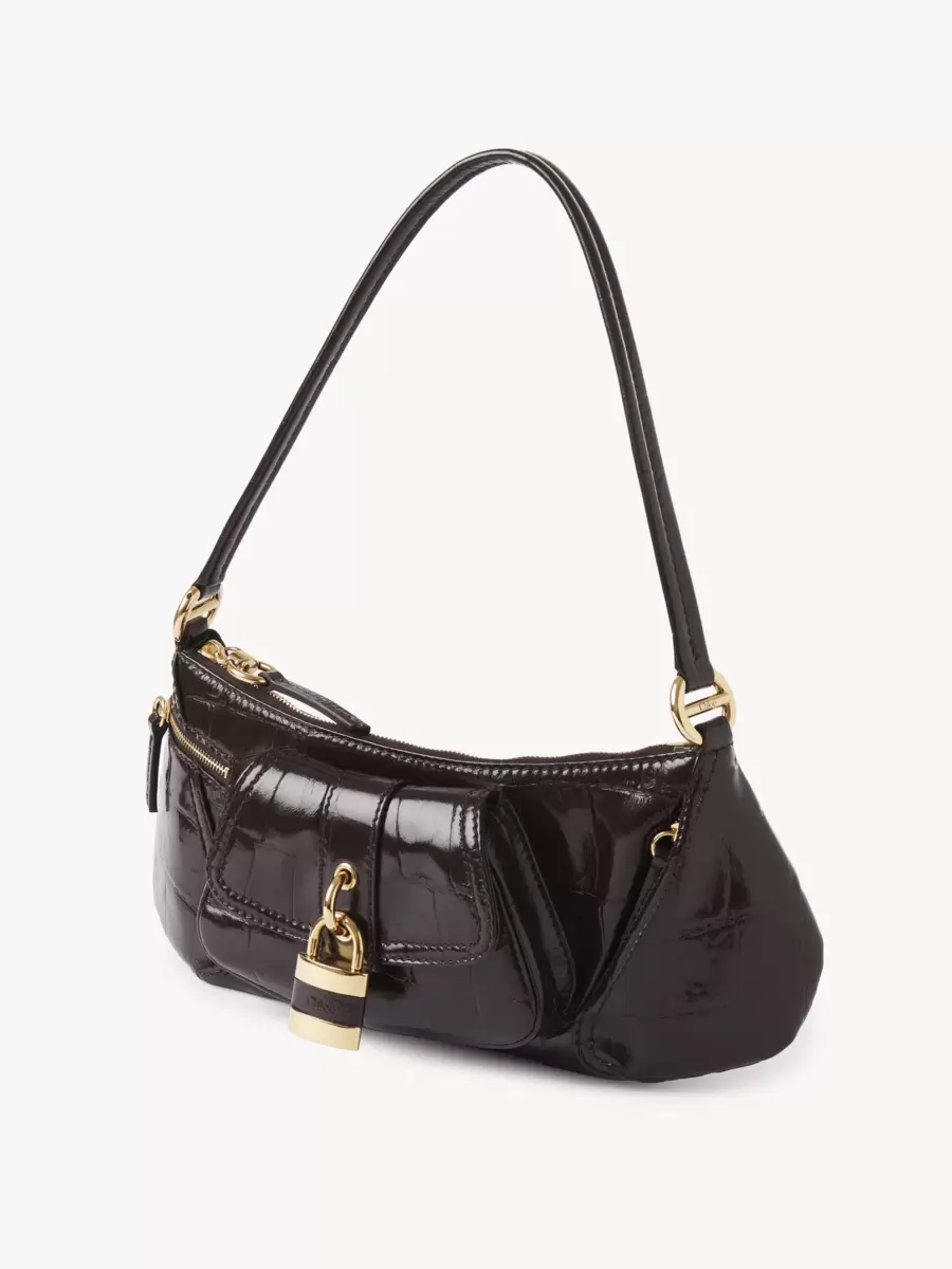 Crafted from shiny calfskin with an embossed crocodile effect, this 99 shoulder bag features cuts, zips, leather patches and double stitching.