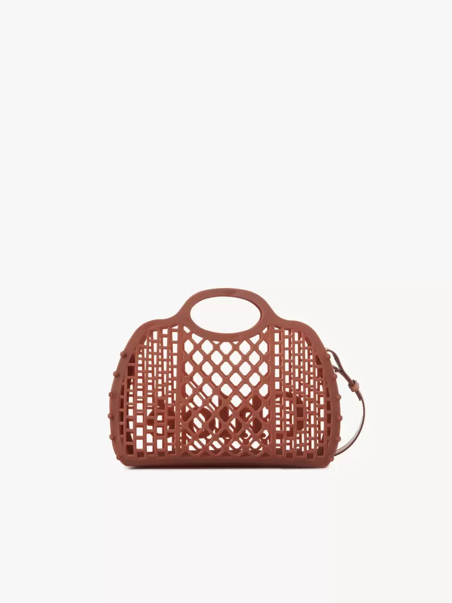 This Chloé Cage jelly tote bag features a rounded, cut-out compartment crafted from an intricate geometric pattern. A tonal Chloé logo signs the front.