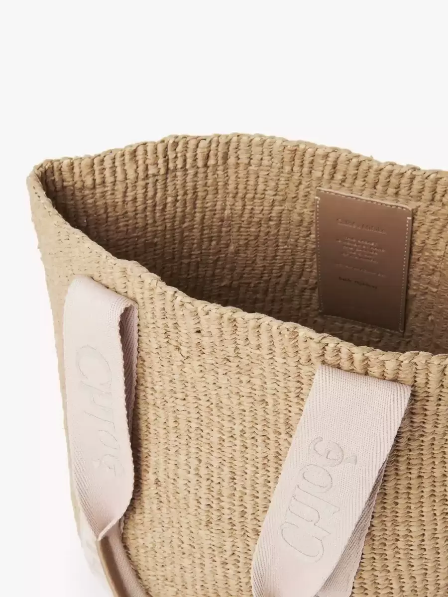 Large basket in fair-trade paper, calfskin & webbing with Chloé logo embroidery