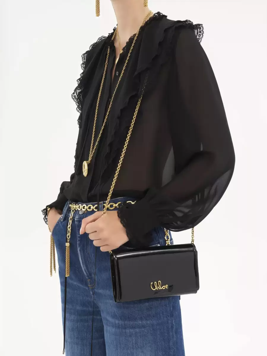 Chloé Iconic flap wallet on chain in patent leather