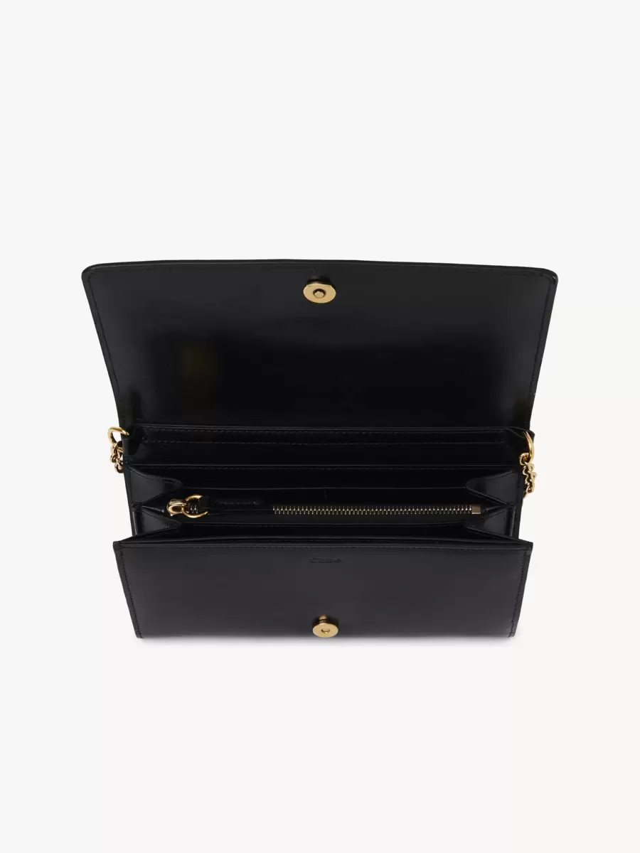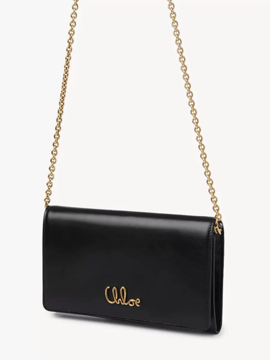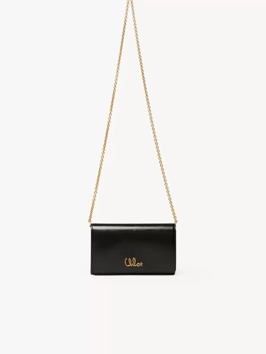 Flap wallet on chain in shiny calfskin