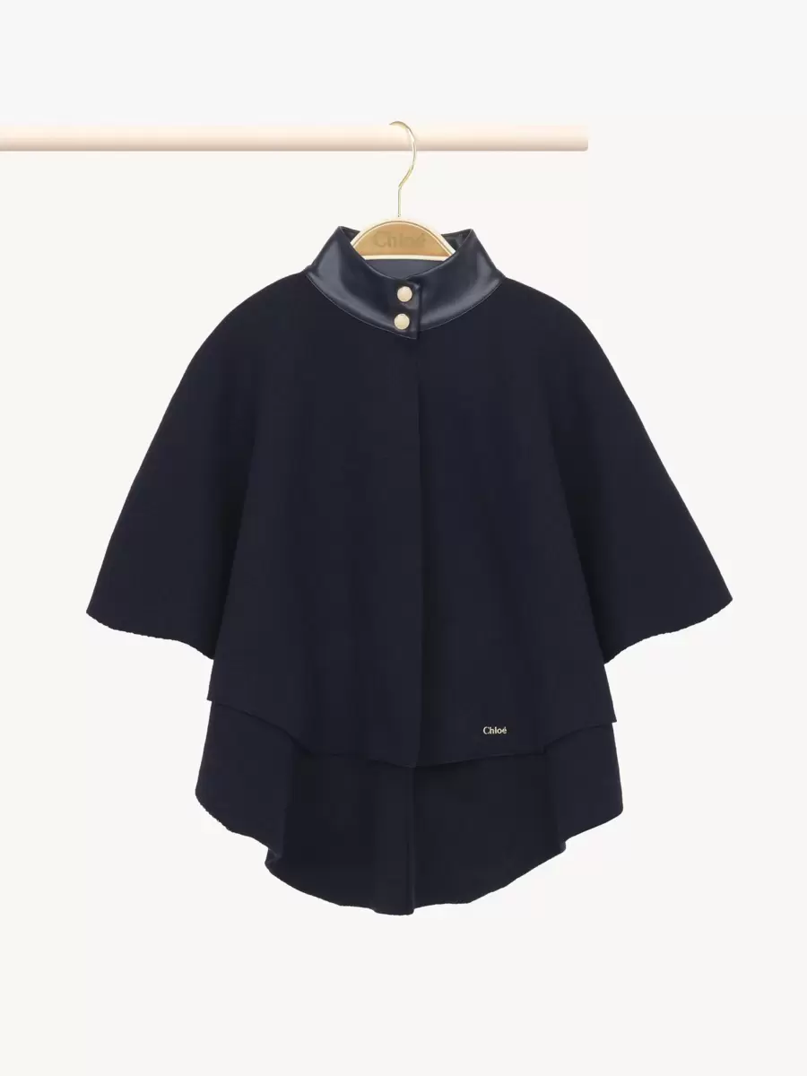 Made from an organic cotton and wool knit, this asymmetrical cape has a high-low, fluid silhouette rooted in the Maison’s DNA. Gold-tone, Chloé-engraved snap buttons fasten the collar, while a gold-tone Chloé logo plate signs the hem.