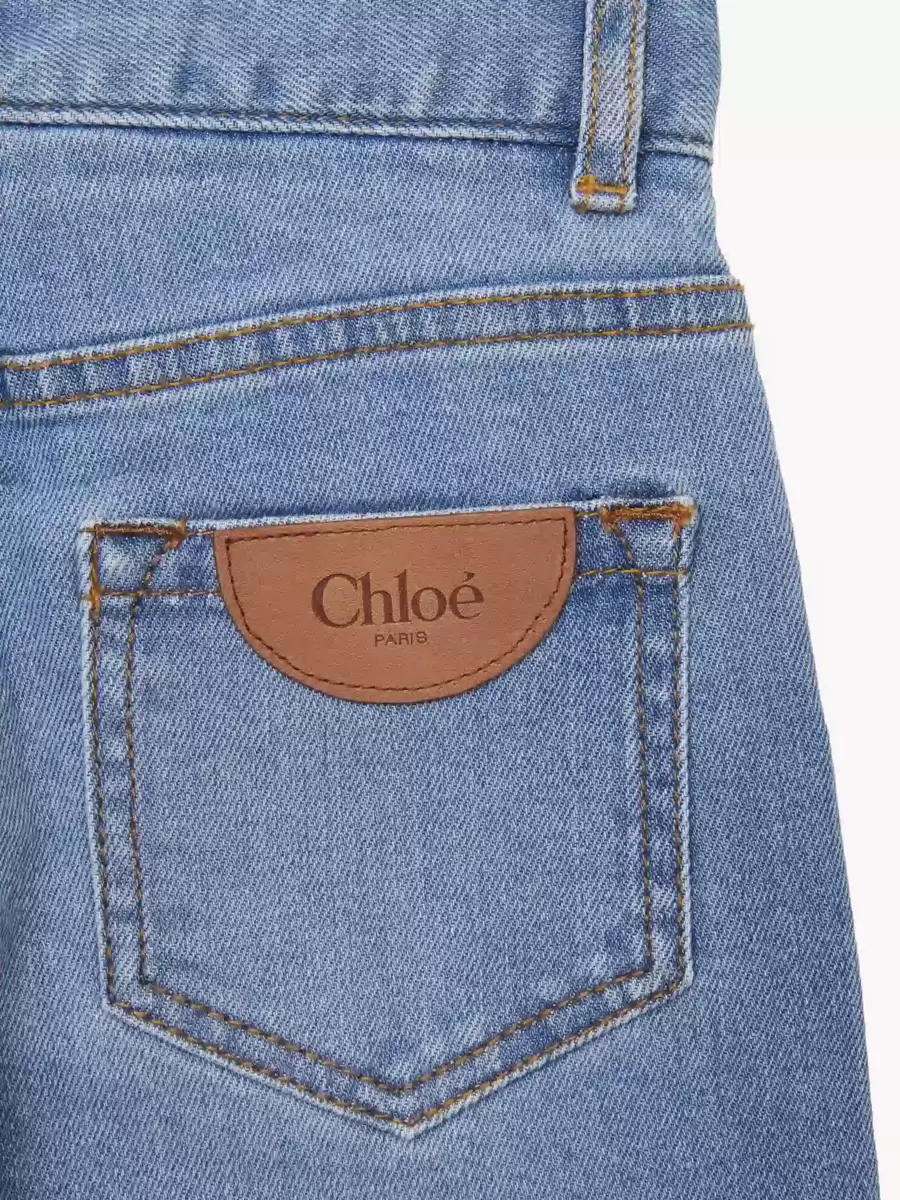 Cut from cotton denim, these bleached jeans have a classic five-pocket design detailed with ochre top-stitching and gold-tone hardware. A Chloé-branded half-moon leather patch signs the right back pocket.