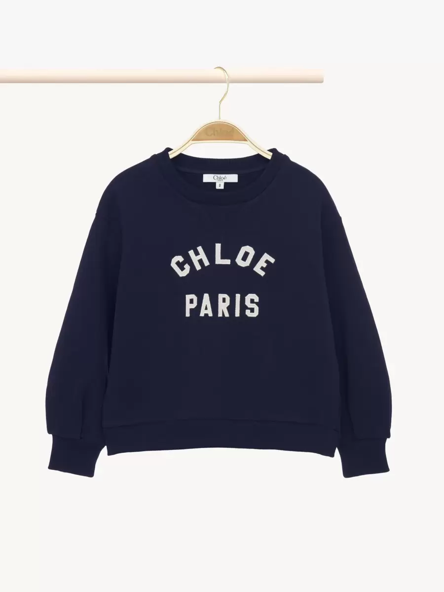 This organic cotton sweater elevates soft, comfortable fleece with contrast Chloé Paris embroidery at the chest. Side pockets and ribbed trims finish the casual, crew-neck silhouette.