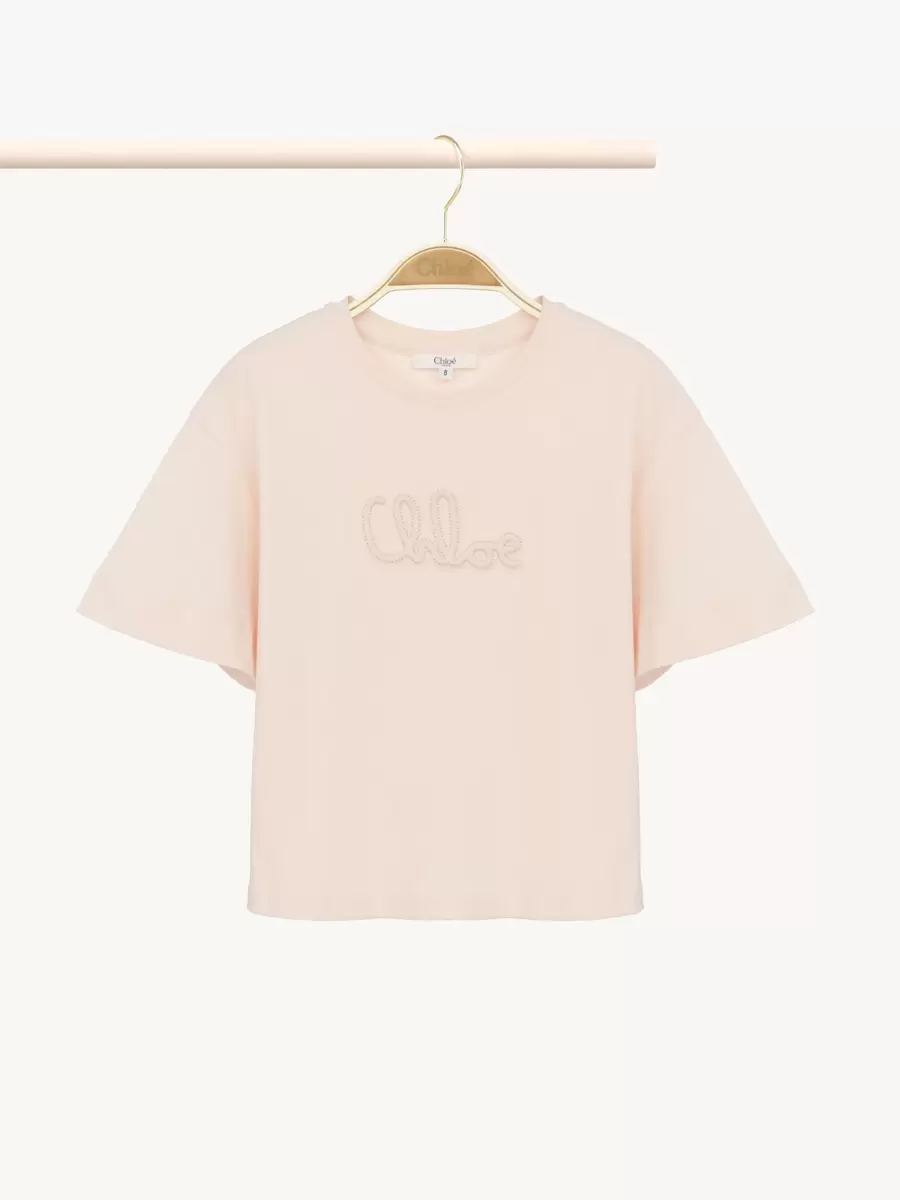 Cut from organic cotton interlock, this crew-neck T-shirt is a relaxed, everyday piece. Contoured with a golden trim, tonal Chloé logo embroidery adorns the chest for an elegant signature.