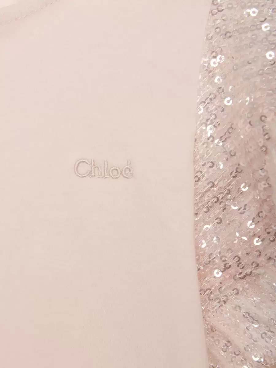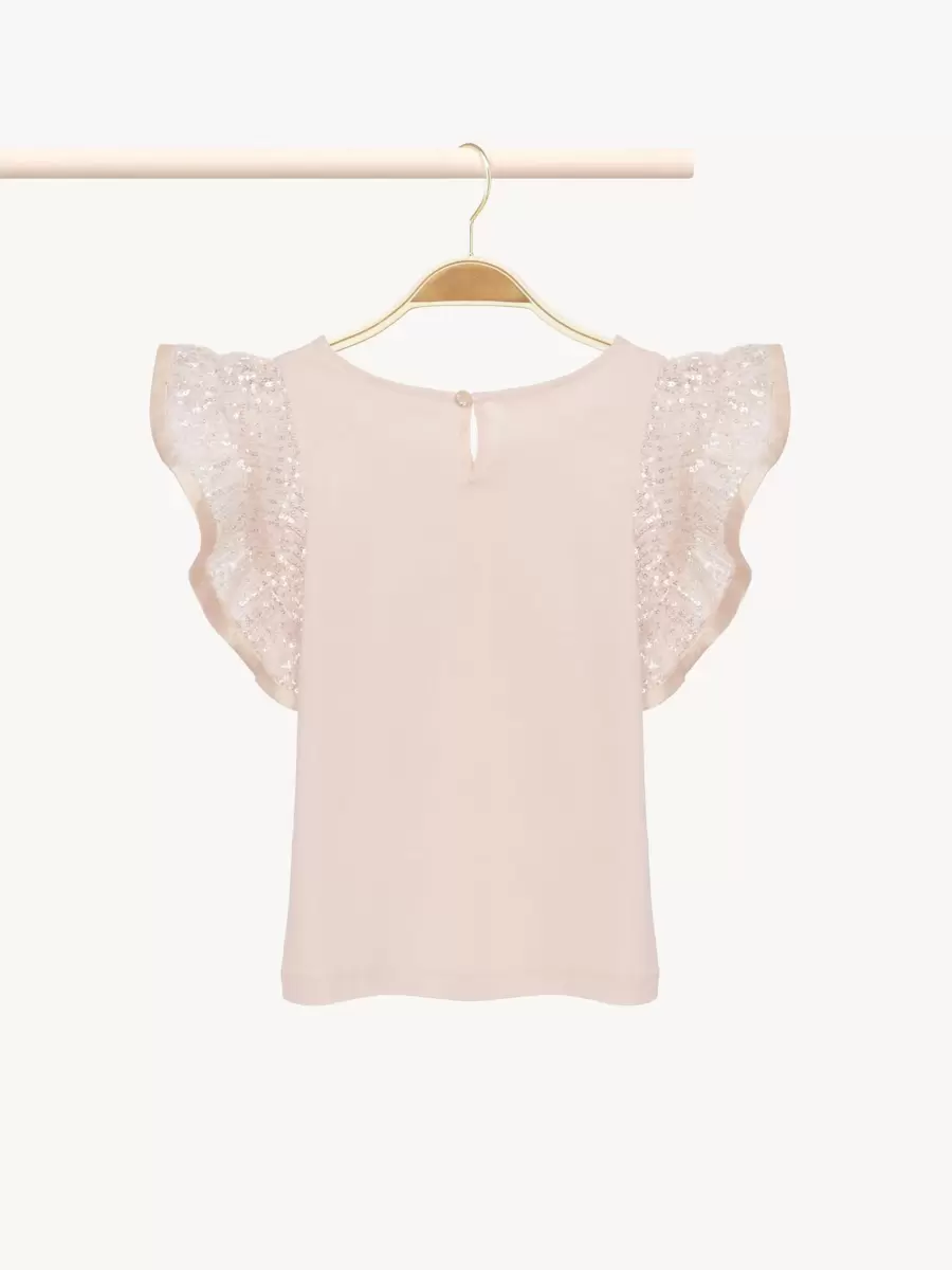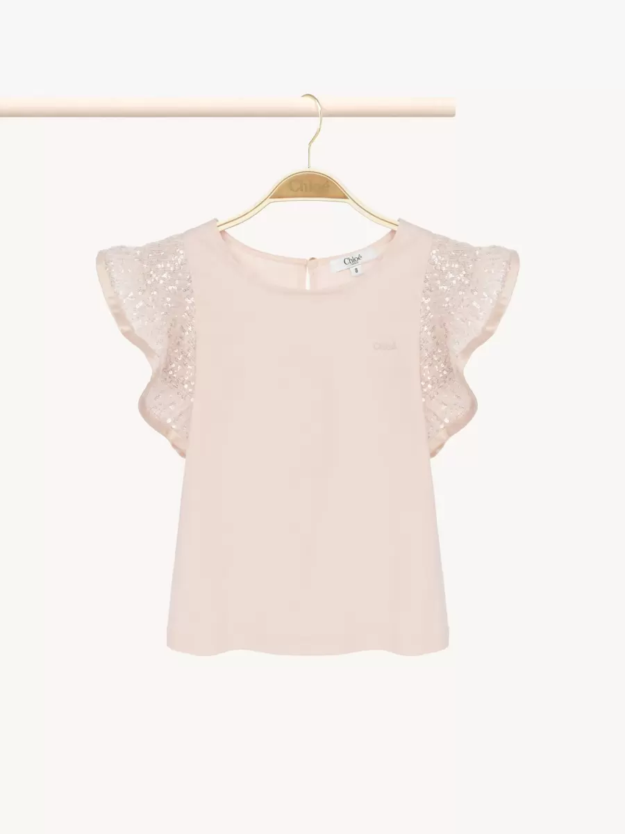 Cut from cotton interlock, this ruffle top features flouncy sleeves embellished with sequins and shiny piping. A gold-tone Chloé-engraved button adorns the back of the neck, while tonal Chloé logo embroidery signs the chest.