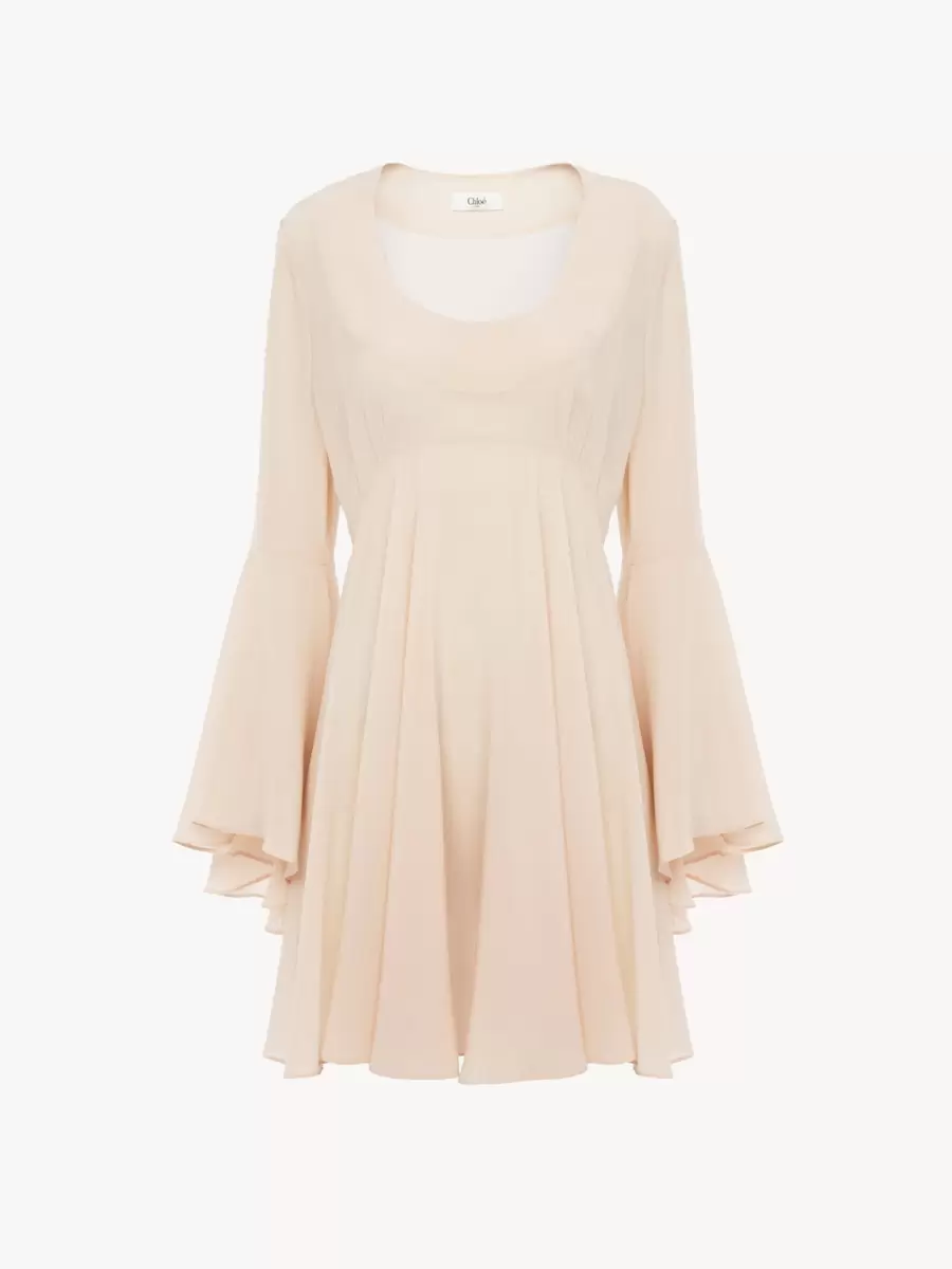 Scoop-neck flared mini dress in organic silk georgette with a silk-mix lining.