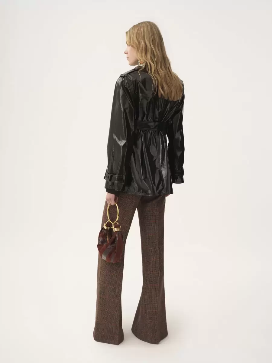 Belted jacket in shiny coated cotton, featuring maxi flap pockets, engraved horn buttons and gold-tone hardware.